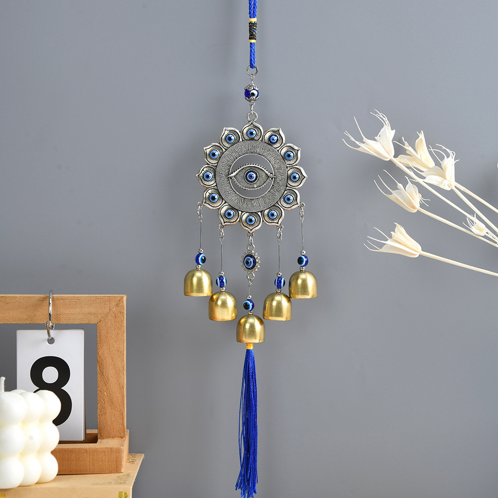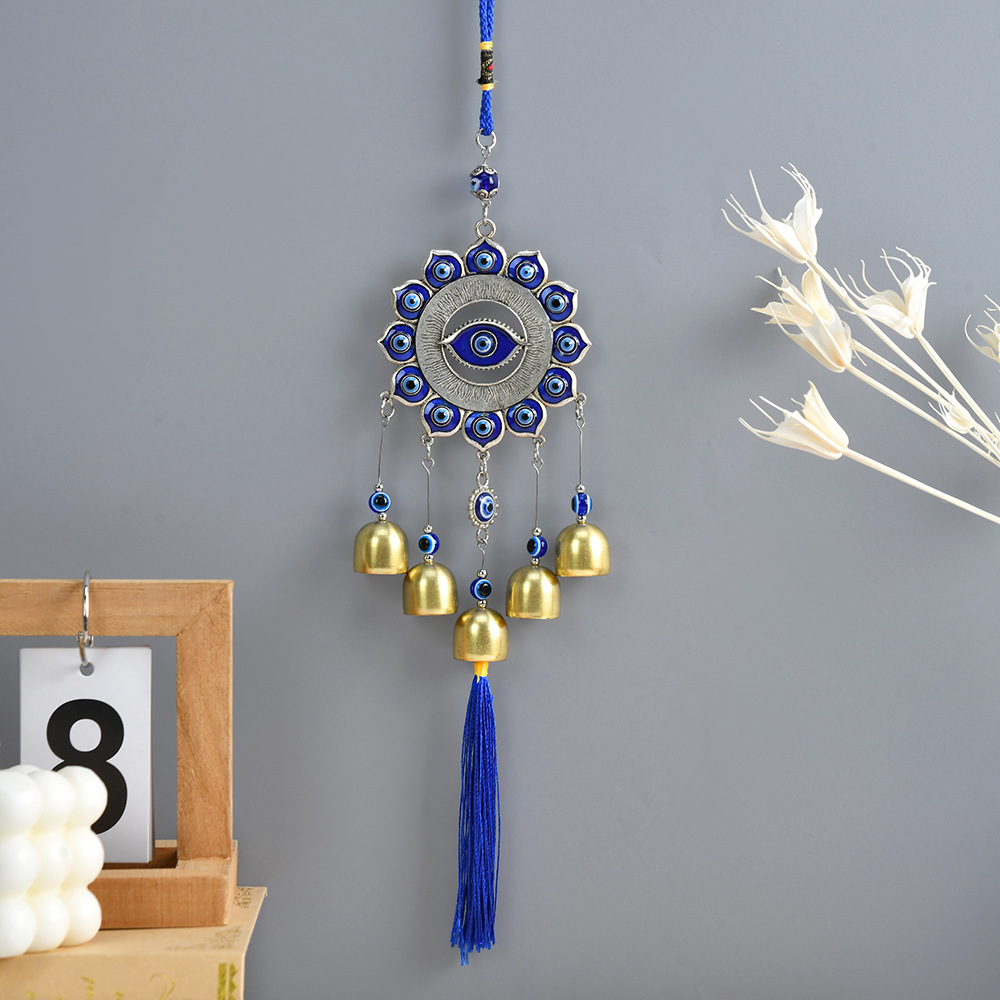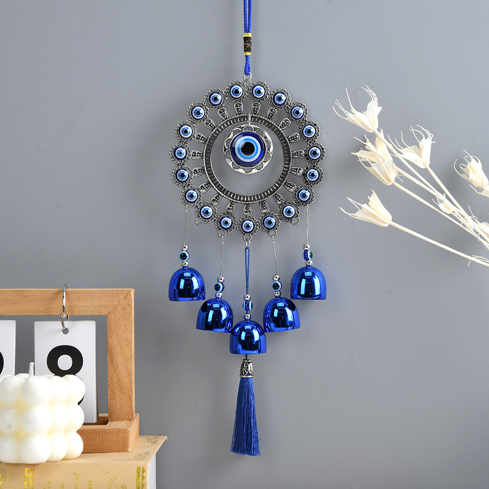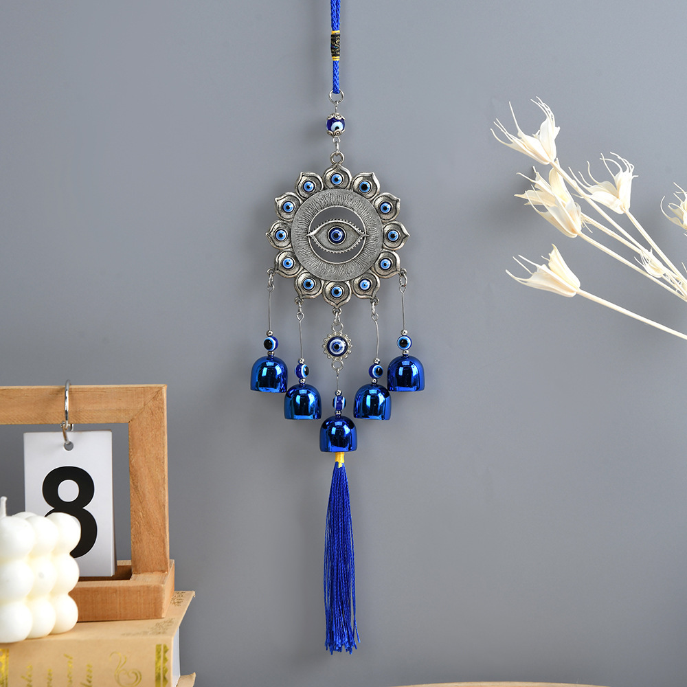 Cross-Border Hot Selling Devil's Eye Wind Chime Blue Eyes Wind Chime Pendant Metal Wind Chime Hanging Ornament Home Decoration Wholesale