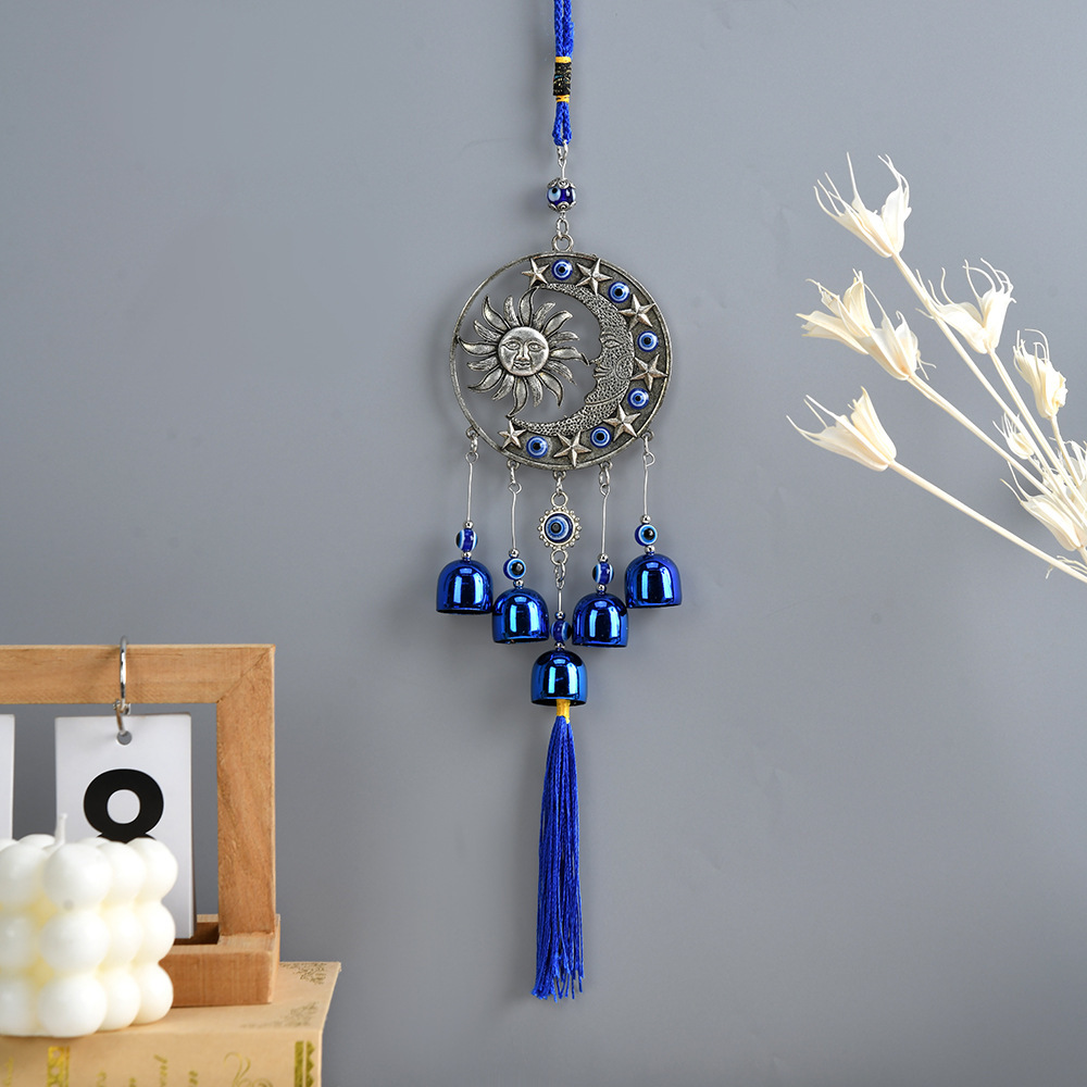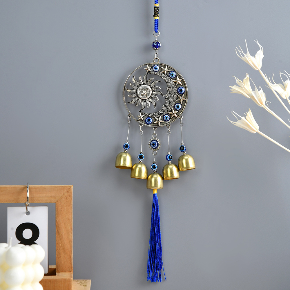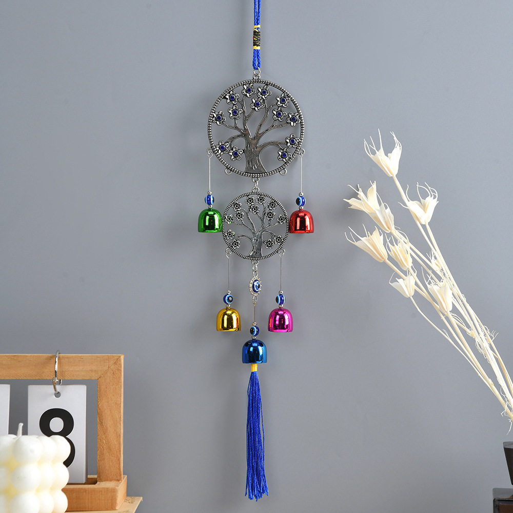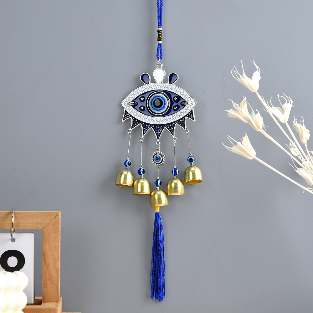 Cross-Border Hot Selling Devil's Eye Wind Chime Blue Eyes Wind Chime Pendant Metal Wind Chime Hanging Ornament Home Decoration Wholesale