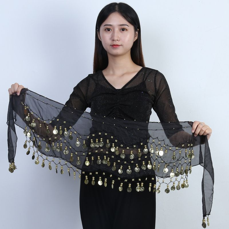 Chaîne de taille pour le ventre en mousseline de soie avec triple ceinture en or pour entraînement de danse