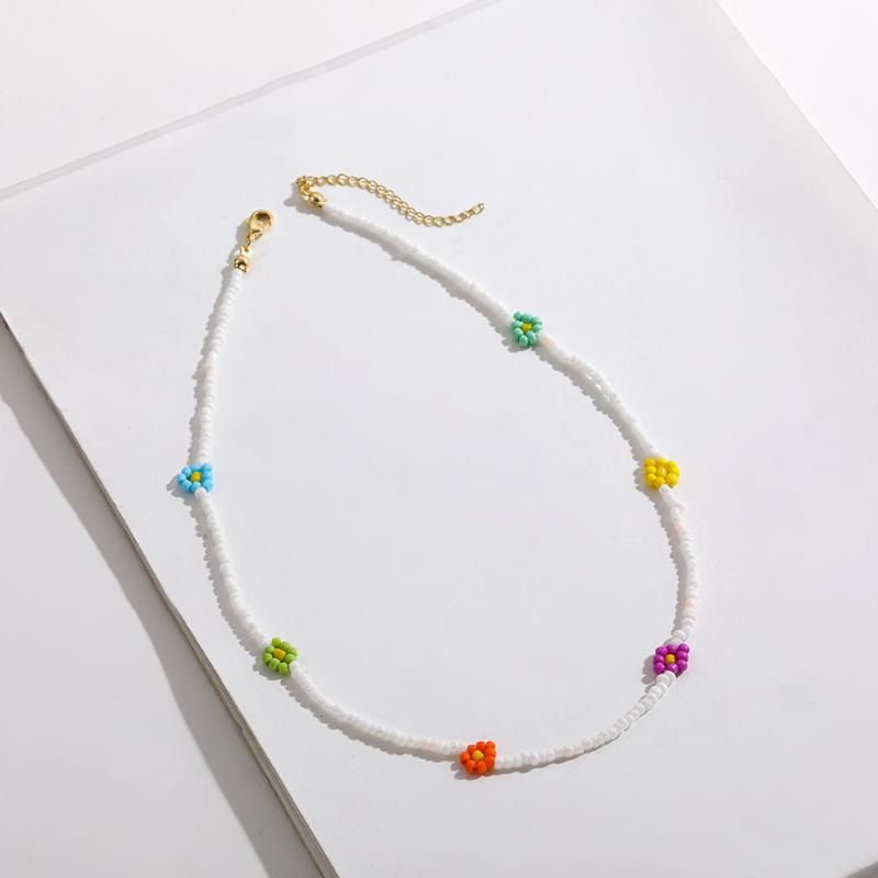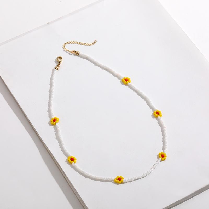 Collier ras du cou en perles de rocaille Boho pour femmes, tissage fait à la main, motif marguerite, perles, coquillage, clavicule