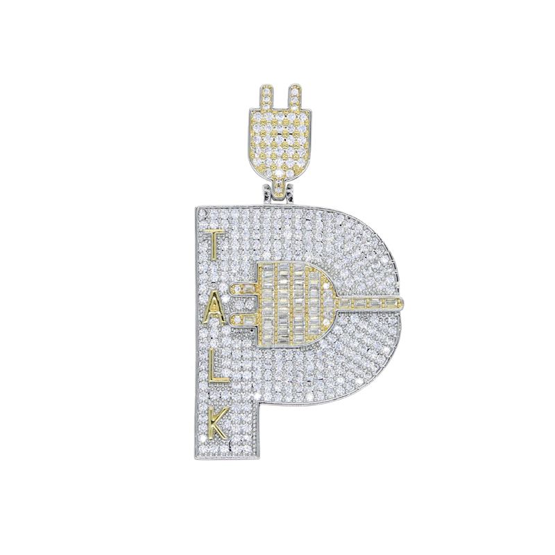 Chaînes Plaqué Or Hip Hop Hommes Bijoux Micro Pave Iced Out Bling Cubique Zircone Pavé Lettre P Forme Talk Plug Pendentif