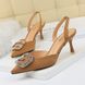 Chaussure de Banquet pour femmes, Style 896-2, talon haut, bouche peu profonde, pointue, sangle arrière creuse, boucle en métal strass