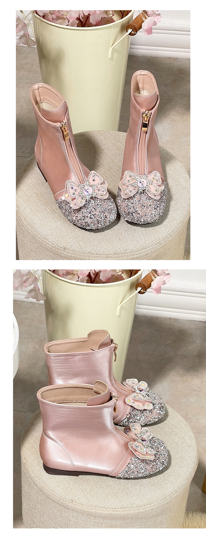 Chaussures pour enfants Bottes pour filles printemps et automne nouvelles bottes de princesse pour enfants petite fille plus bottes courtes chaudes en velours bottes en cuir pour bébé