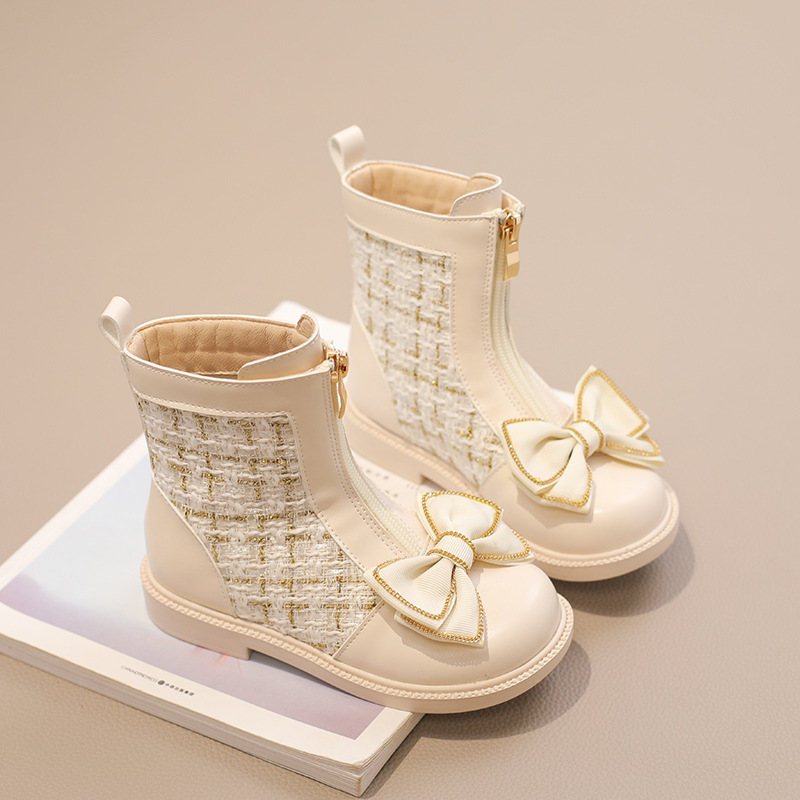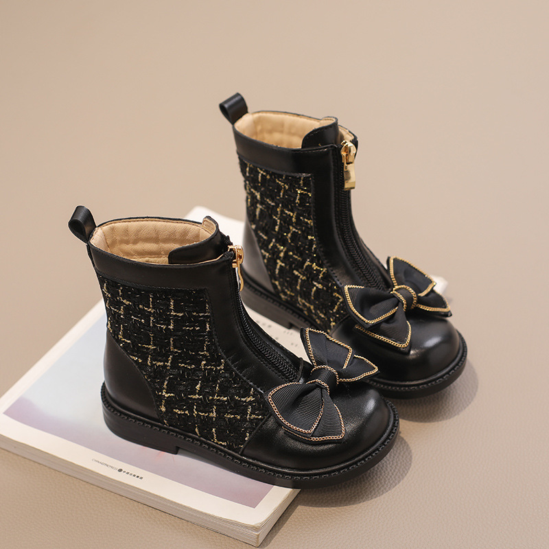 Chaussures pour enfants hiver nouveau style plus bottes simples en velours pour enfants petites filles bottes courtes bottes en cuir à la mode avec nœud