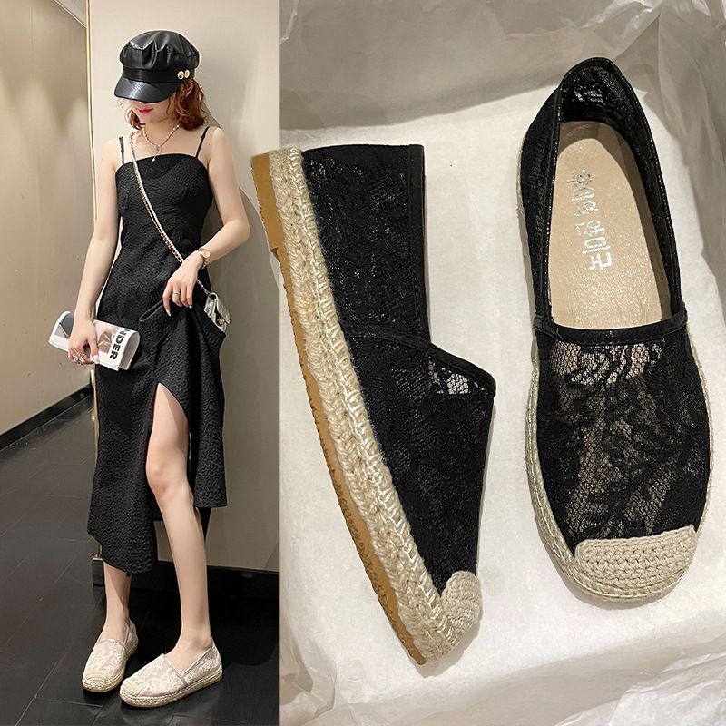 Chaussures simples pour femmes, nouvelle édition coréenne de printemps et d'automne, maille respirante, tissage d'herbe plate, chaussures de pêcheur pour femmes, 2024