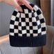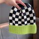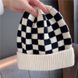 Bonnet tricoté en damier, automne et hiver, écriture féminine, chapeau en laine vert petite herbe, grosse tête, demi-doigt, niche