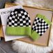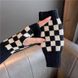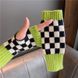 Checkerboard, autumn and winter knitted hat, female writing, small grass green wool hat, large head, half finger, niche knitted gloves