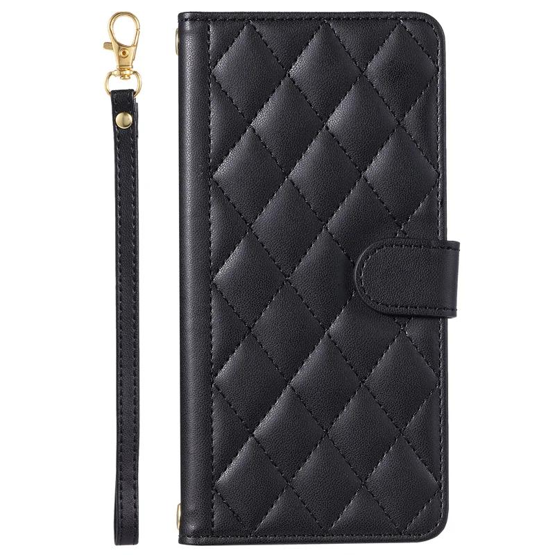 Checkered Leather Wallet Case For Samsung Galaxy A10 A20 A30 A30S A40 A50 A50S A70 A70S Lanyard Flip Phone Cover