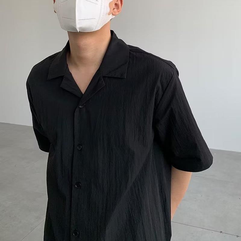 Korean summer Cuban collar cotton linen short sleeved shirt for men, white linen loose vacation style, versatile short lining