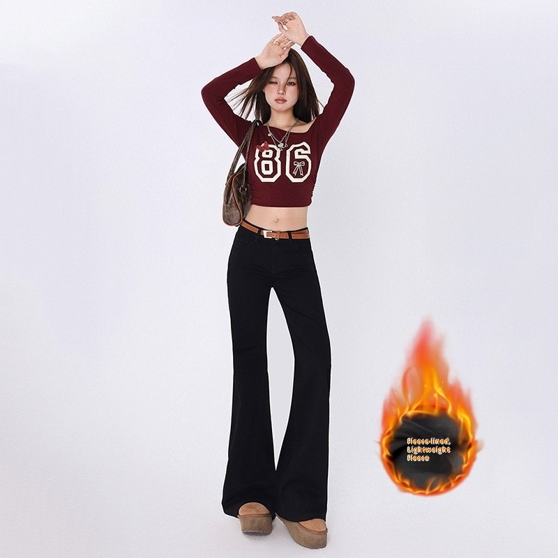Item Number:CY218,Brand:other,Fabric Name:Denim Fabric,Main fabric composition:Cotton,Main fabric material composition 2:other,Design:Flared Pants,The length of the pants:Long Pants,Waist Shape:High-waisted,Thickness:Average,Trendy Elements:Zipper,Year/Season of Release:Autumn 2025,Color:Nine-point/Black, Long Pants/Black, Extended/Black, Fleece Thin Velvet/Nine-point/Black, Fleece Thin Velvet/Long Pants/Black, Fleece Thin Velvet/Extended/Black, Thickened/Extended/Black, Thickened/Long Pants/Black, Thickened/Extended/Black,Size:XS, S, M, L, XL, 2XL,Style Type:Street Style Influencer,Main fabric ingredient content:70% included - 80% excluded,Style:Cowboy Style,Elasticity:High Elasticity,Pants Style:Slightly Flared,Cross-border Style Type:Sexy Hot Girl,Is it cross-border sourcing?:yes,Product Category:Jeans,Main fabric component 2 content:Below 30%,Craftsmanship:Non-iron treatment,Main Downstream Sales Regions 1:European and American,Main downstream sales regions 2:Southeast Asia