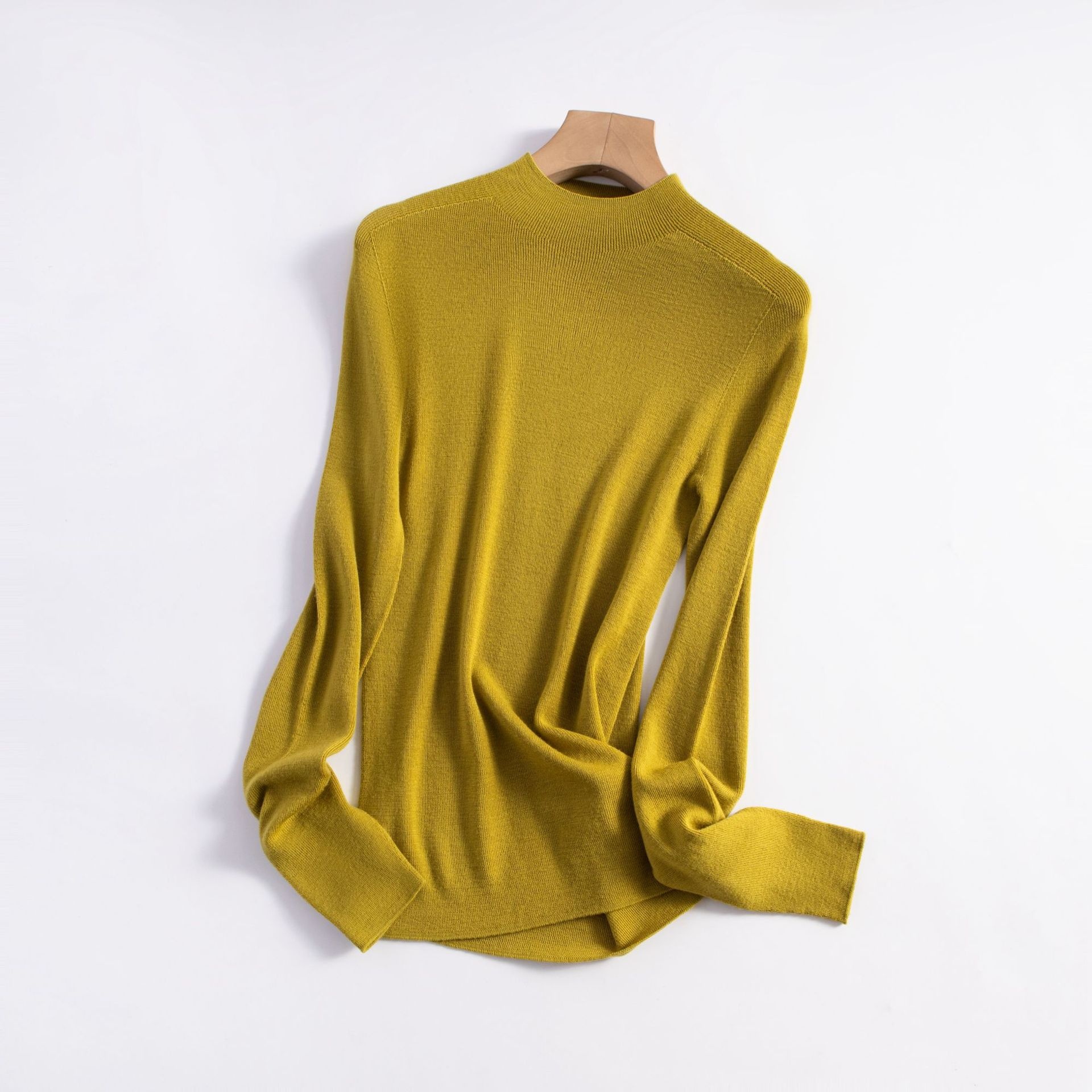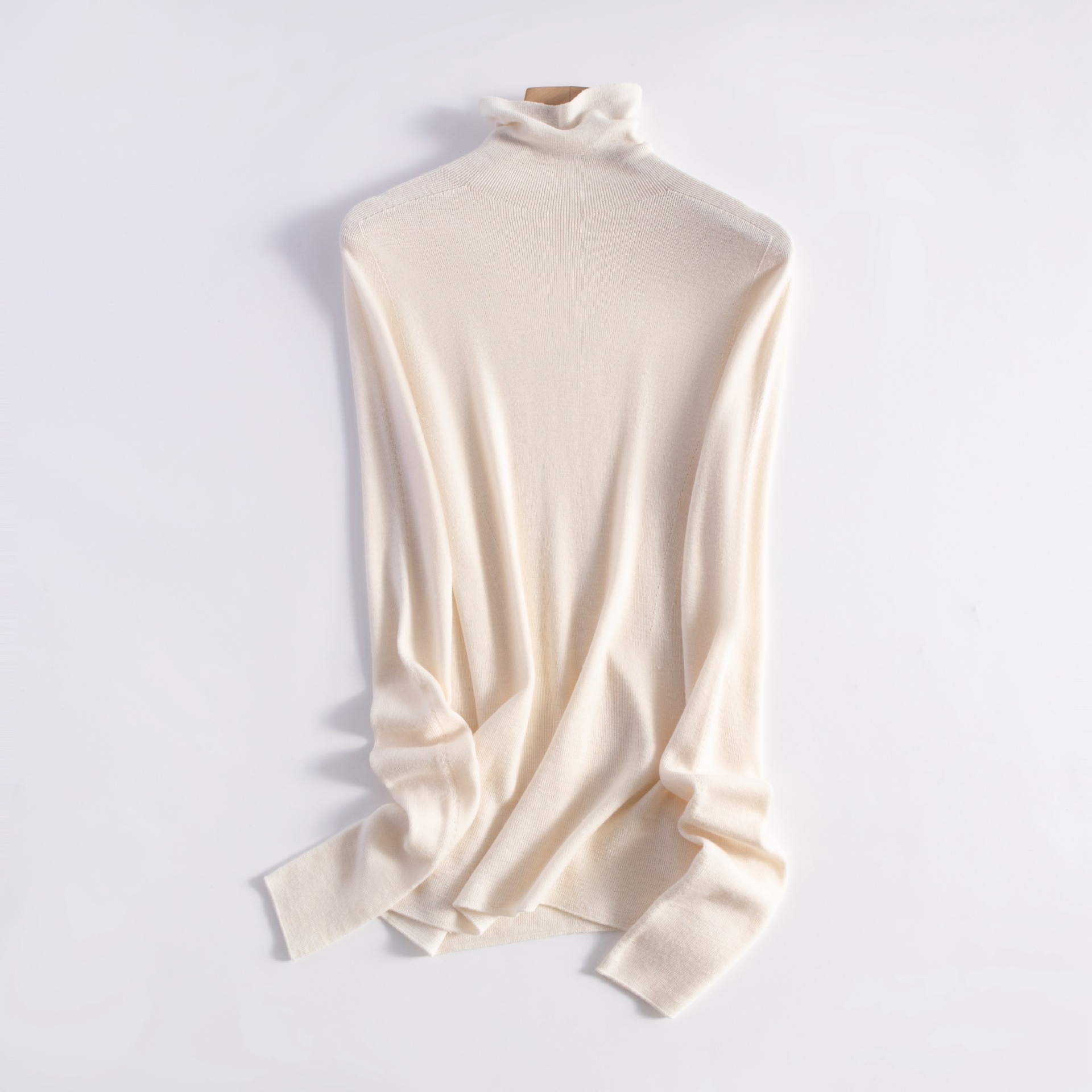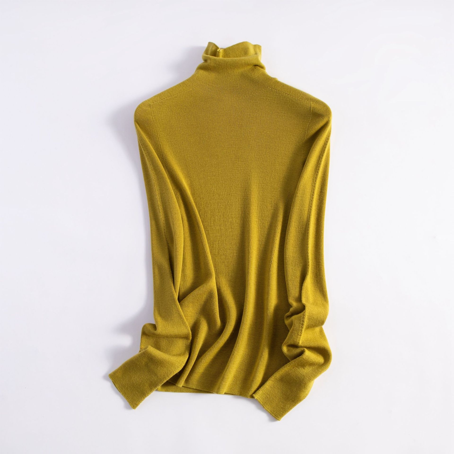 ChicShe ChicShe Xin Ao Pull tricoté sans couture en laine fine 100 % pour femme, taille 25, début d'automne, col roulé.