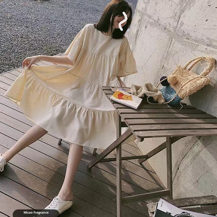 Item Number:838,Product Category:Dress,Brand:other,Collar Style:Round Neck,Sleeve Length:Three-quarter Sleeve,Fabric Name:Polyester,Main fabric composition:Polyester Fiber,Main fabric ingredient content:95% and above,Pattern:Splicing,Skirt Length:Long dress,Color:Pink, apricot, yellow,Size:M,L,XL,XXL,XXXL,4XL,Year/Season of Release:Summer 2023,Skirt Style:Cake Topper,Style Type:Japanese and Korean Style Casual,Trendy Elements:Puff Sleeve,Cross-border Style Type:Comfortable and casual,Breastfeeding Opening:None,Sleeve Style:Regular Sleeve,Is it cross-border sourcing?:yes,Main fabric component 2 content:95% and above,Craftsmanship:Yarn-Dyed,Main Downstream Sales Regions 1:Southeast Asia,Main fabric material composition 2:Polyester Fiber,Main downstream sales regions 2:Southeast Asia