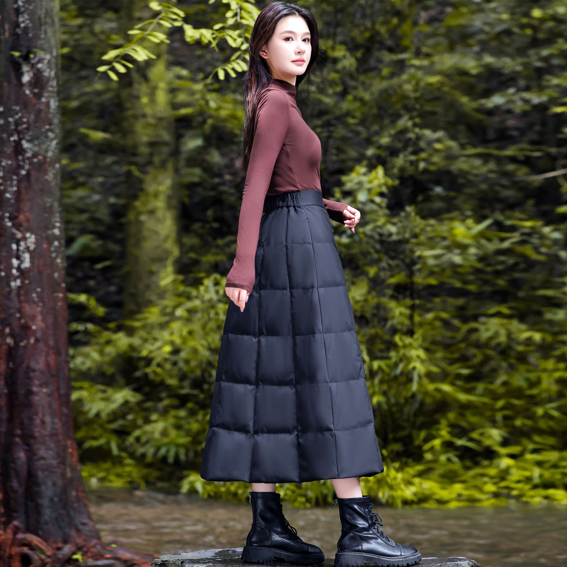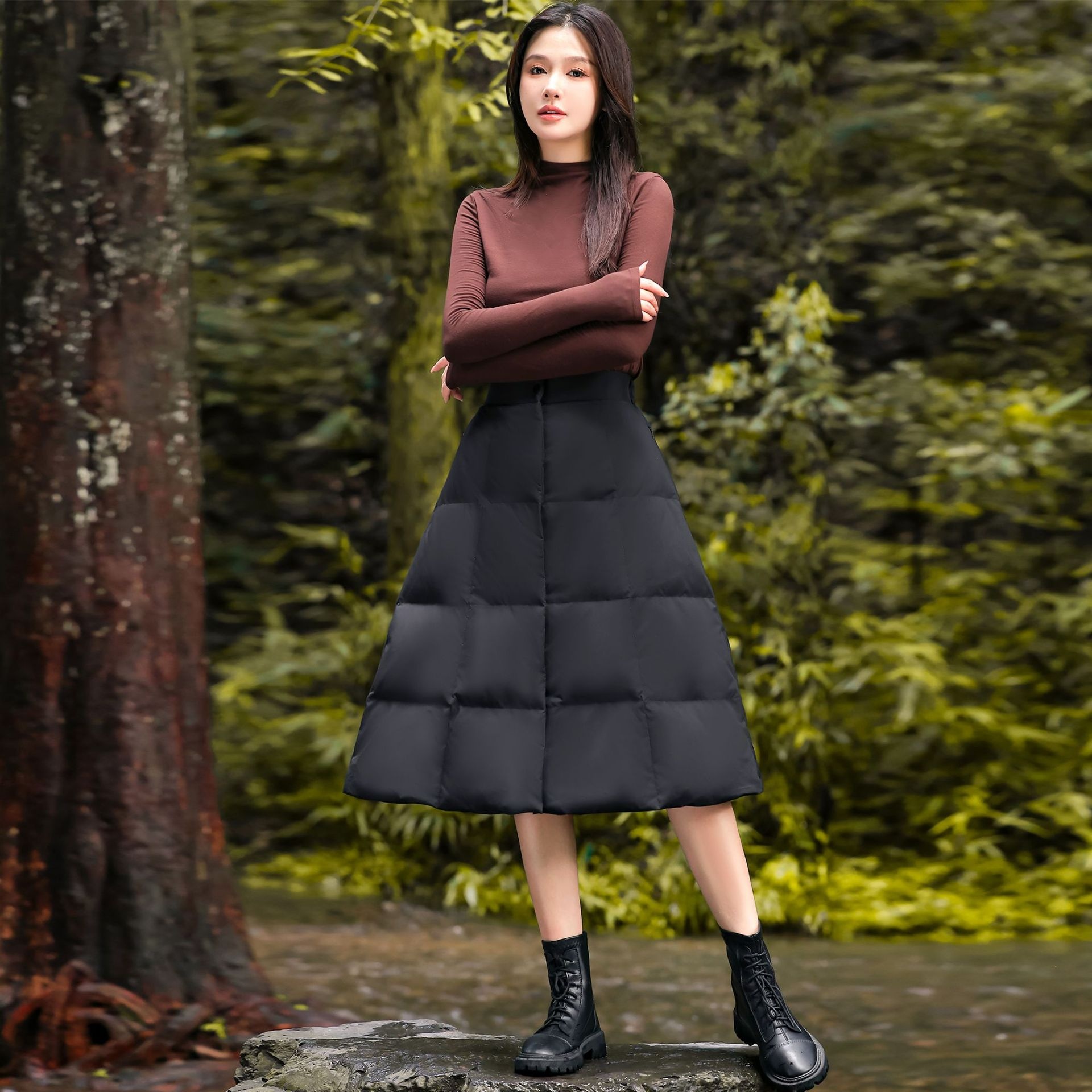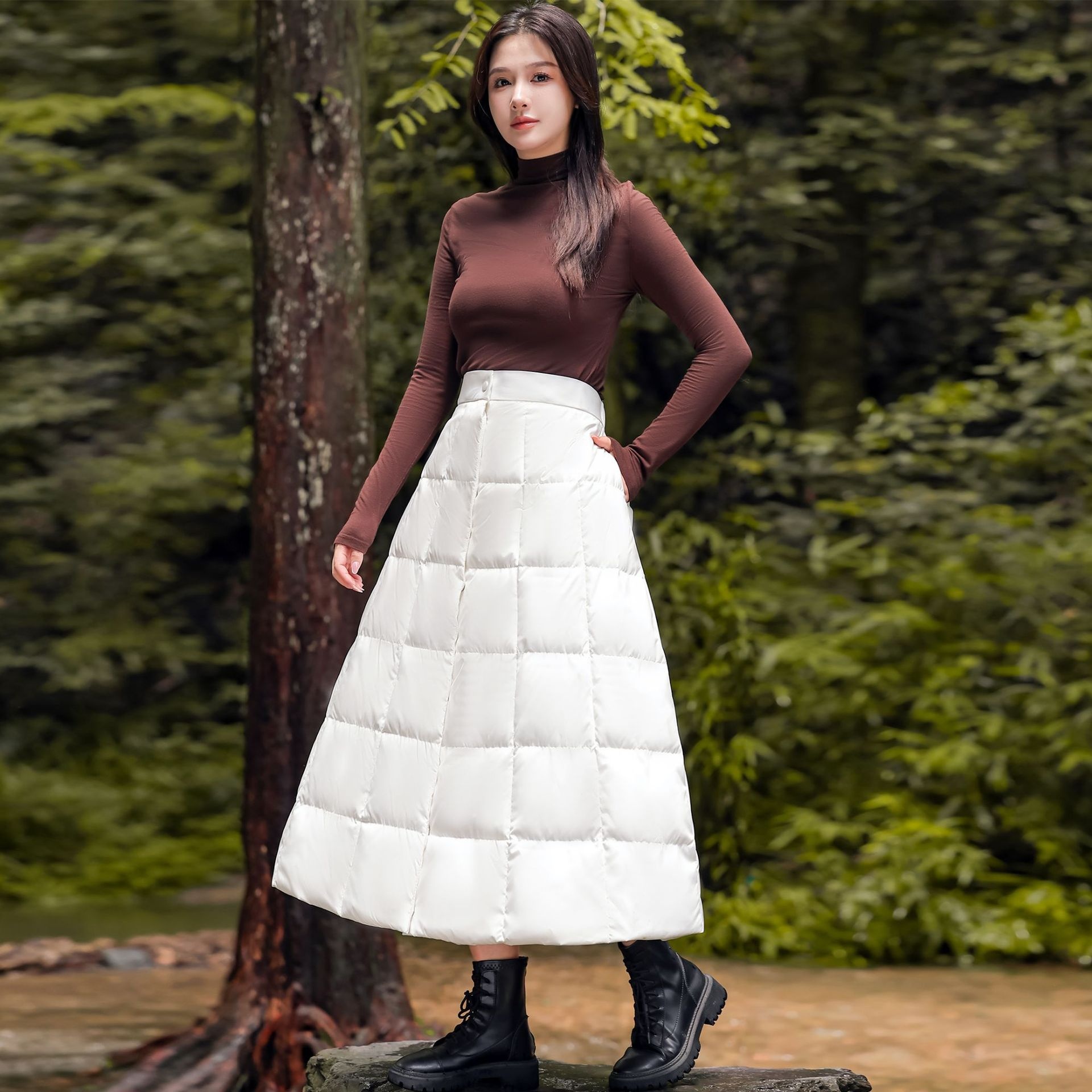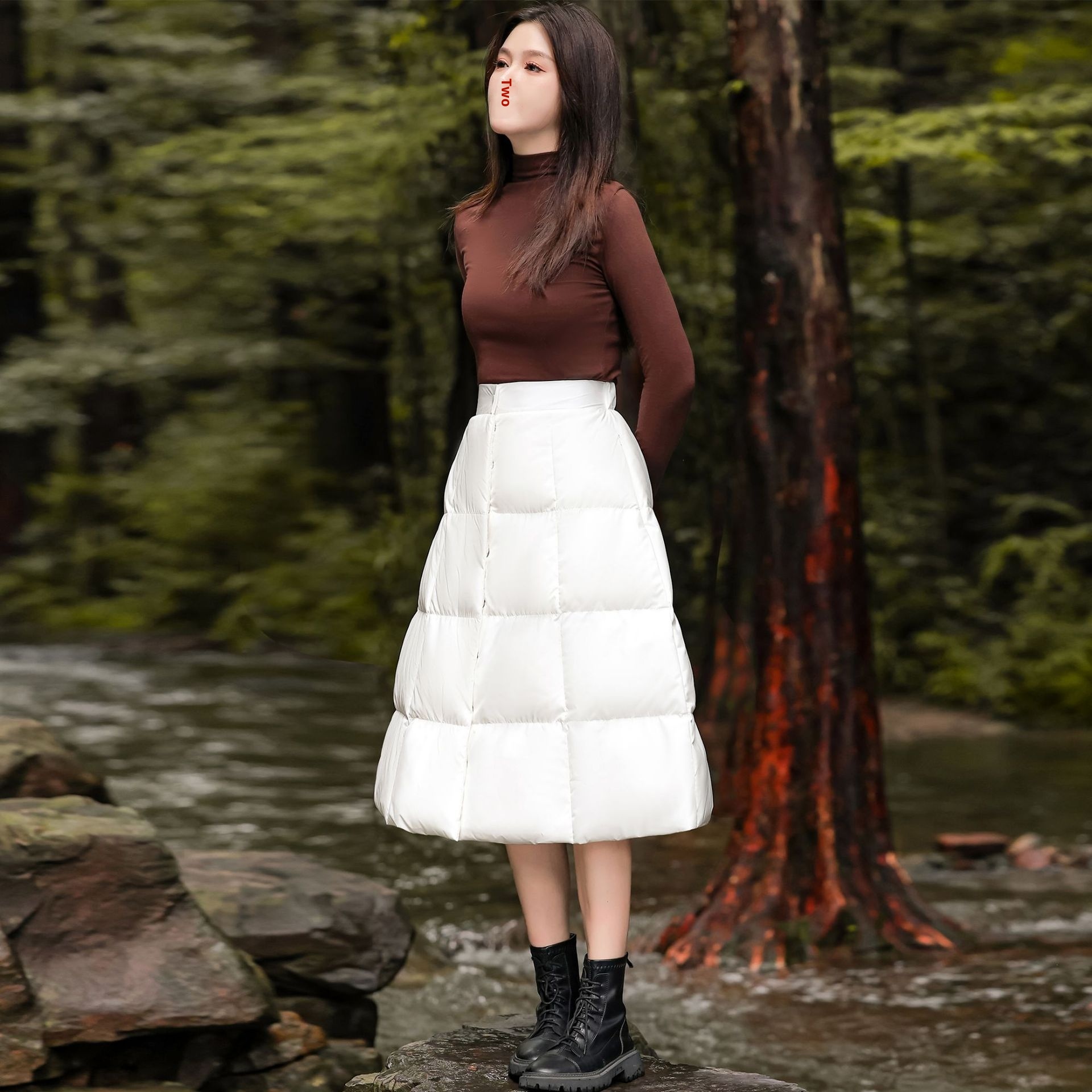 Veste épaisse ChicShe 90 en toile de canard blanche, coupe trapèze, mi-longue, coupe-vent, chaude, idéale pour le cyclisme. Jupe en duvet.