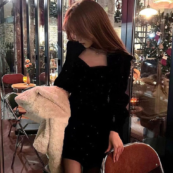 Fabric Name:Polyester Fiber,Pattern:Solid Color,Craftsmanship:Collage/Assembly,Origin:Mrs,Design:Pullover Style,Combination Form:Single item,Skirt Length:Short Skirt,Skirt Style:Princess Dress,Collar Style:Square Neck,Sleeve Style:Puff Sleeve,Sleeve Length:Long Sleeve,Waist Shape:High-waisted,Trendy Elements:V-neck, solid color, sequins, fashion, puff sleeves,Year/Season of Release:2025 Winter Season,Main fabric composition:Polyester Fiber,Main fabric material composition 2:Polyester Fiber,Item Number:LGJ822,Brand:other,Color:Red, Black,Size:S, M, L, XL, XXL,Style Type:Elegant Commuter,Front placket:Pullover,Main fabric ingredient content:95% and above,Style:Casual Style,Skirt Category:Dress,Cross-border Style Type:Elegant and graceful,Is it cross-border sourcing?:yes,Main fabric component 2 content:95% and above,Main Downstream Sales Regions 1:Southeast Asia,Main downstream sales regions 2:European and American