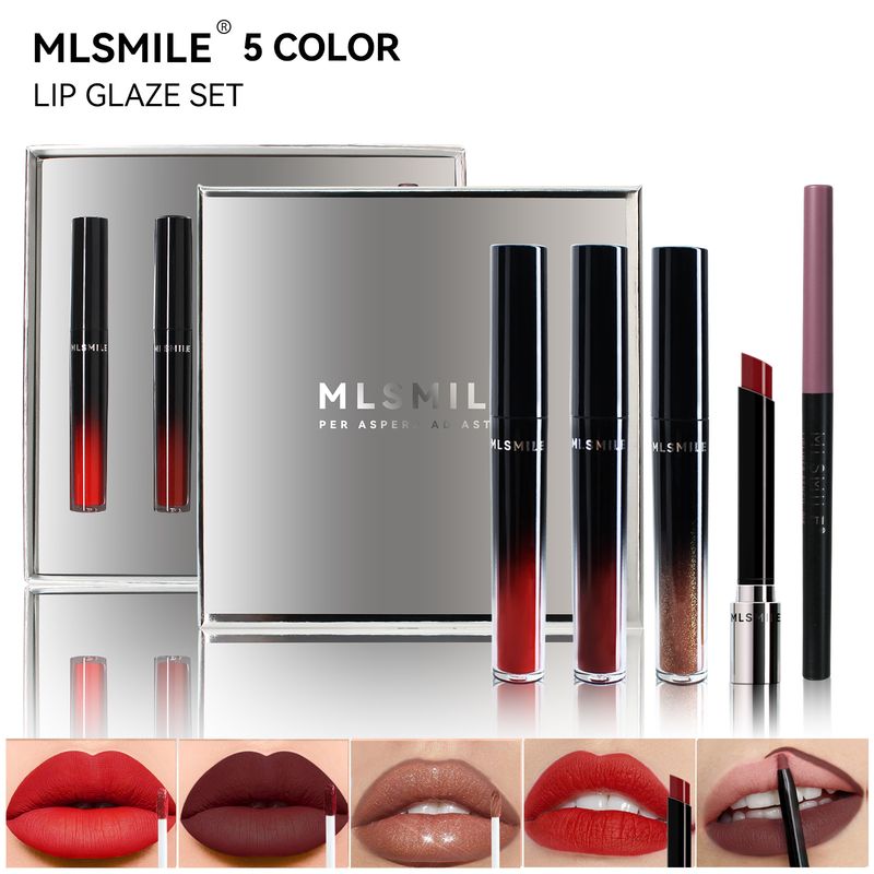 Lipstick Set Pearlescent Shimmer Lip Gloss Matte Waterproof Non-Stick Cup Lip Tint Lip Liner Makeup Gift Box