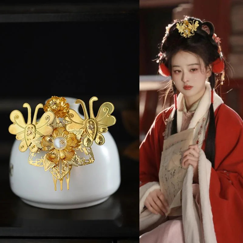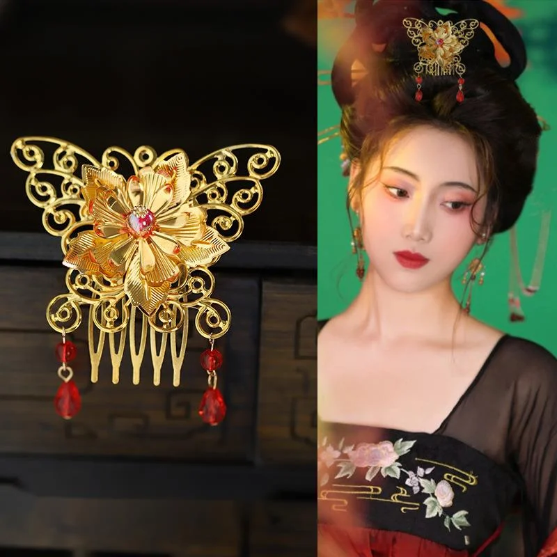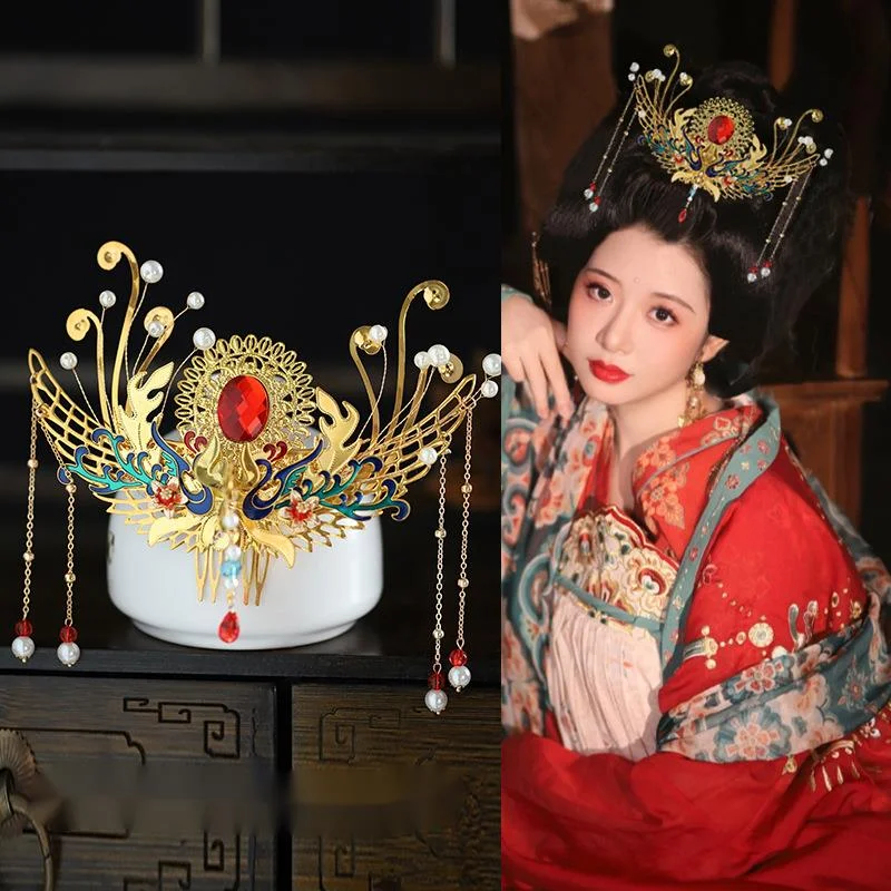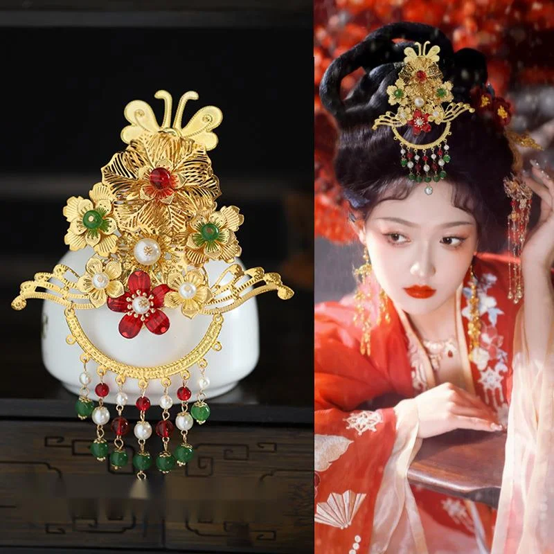 Hanfu Golden Headdress Ancient Style Dunhuang Flying Fairy Tang Style Rich Woman Hair Ornaments Palace Fringe Hair Crown Crown