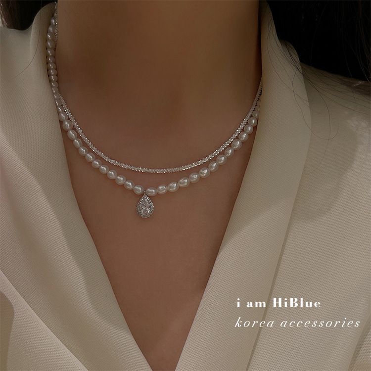 Korean Fashion Freshwater Pearl Necklace Design Sense Sparkling Collarbone Chain Simple Double Layer Detachable Collarbone Chain
