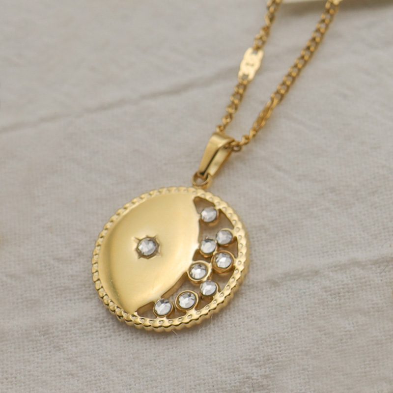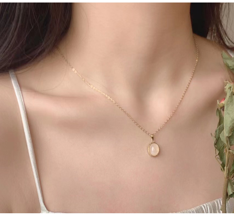 Collier en acier au titane pendentif polyvalent incolore pierre naturelle goutte d'huile mode été nouveau produit chaîne de collier doux