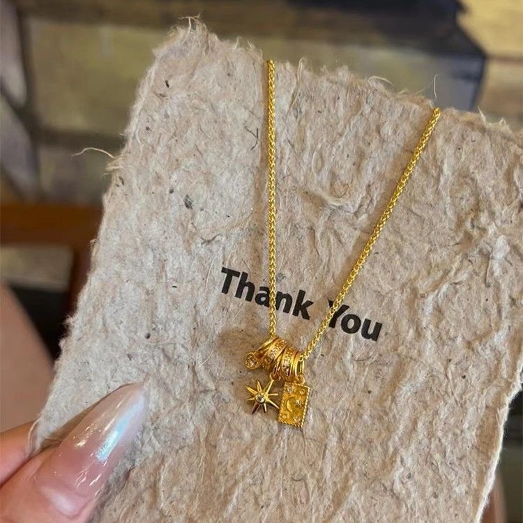 New Chinese Style Gold Star Moon Tassel Necklace Versatile Exquisite Personality Full Circle Brightening Running Ring Collarbone Chain
