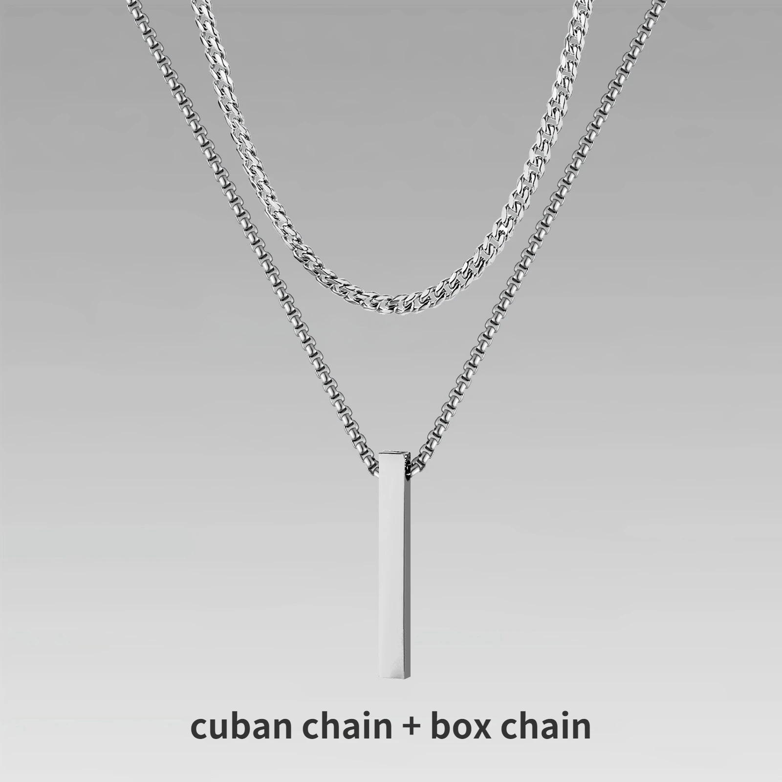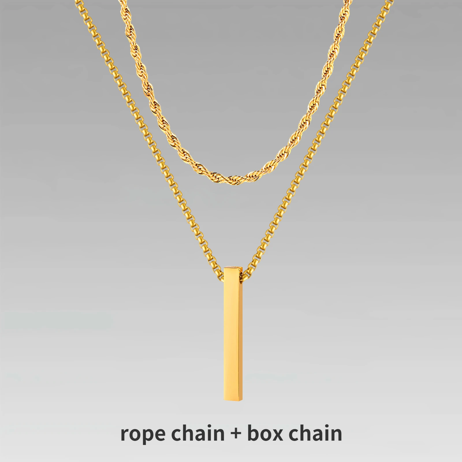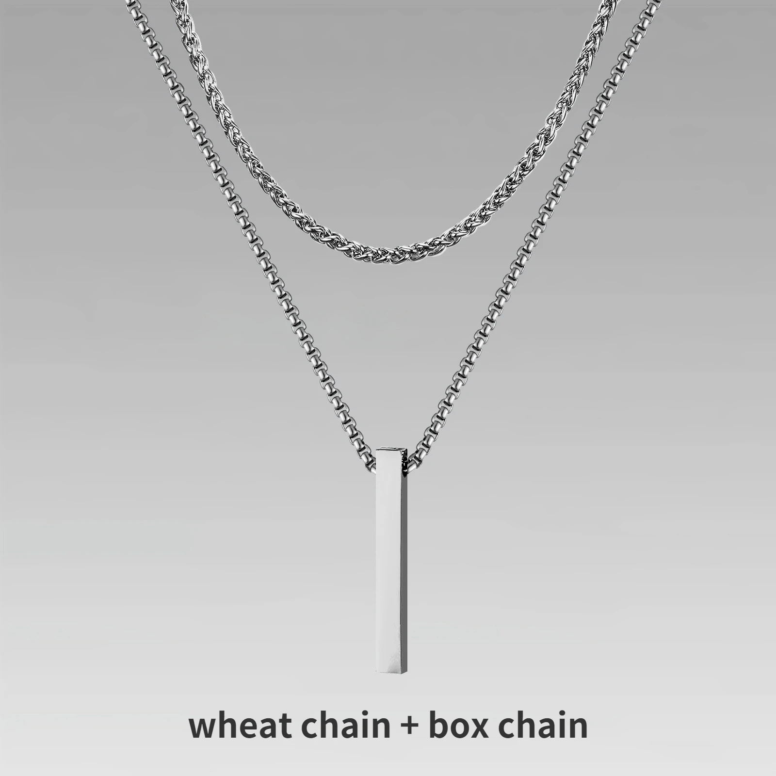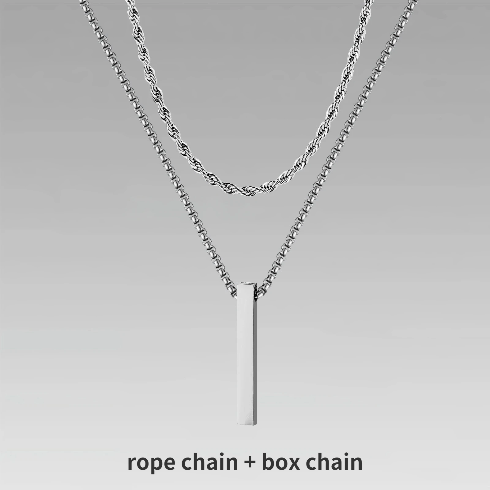 Colliers à barres verticales 3D Vnox pour hommes, pendentif géométrique en acier inoxydable superposé, chaîne cubaine en corde de blé superposée, collier pour garçon