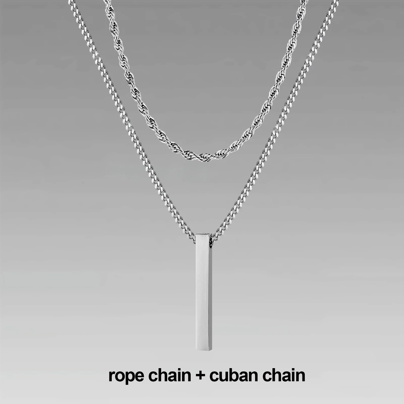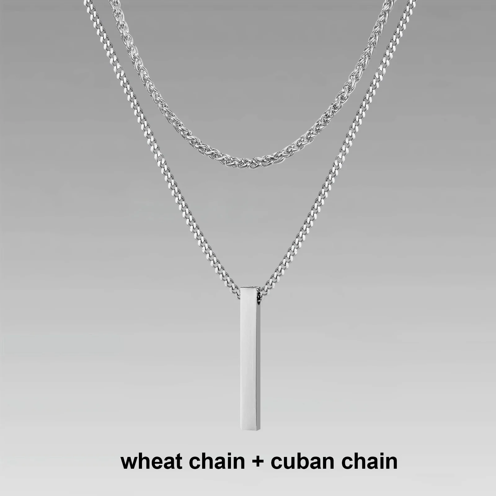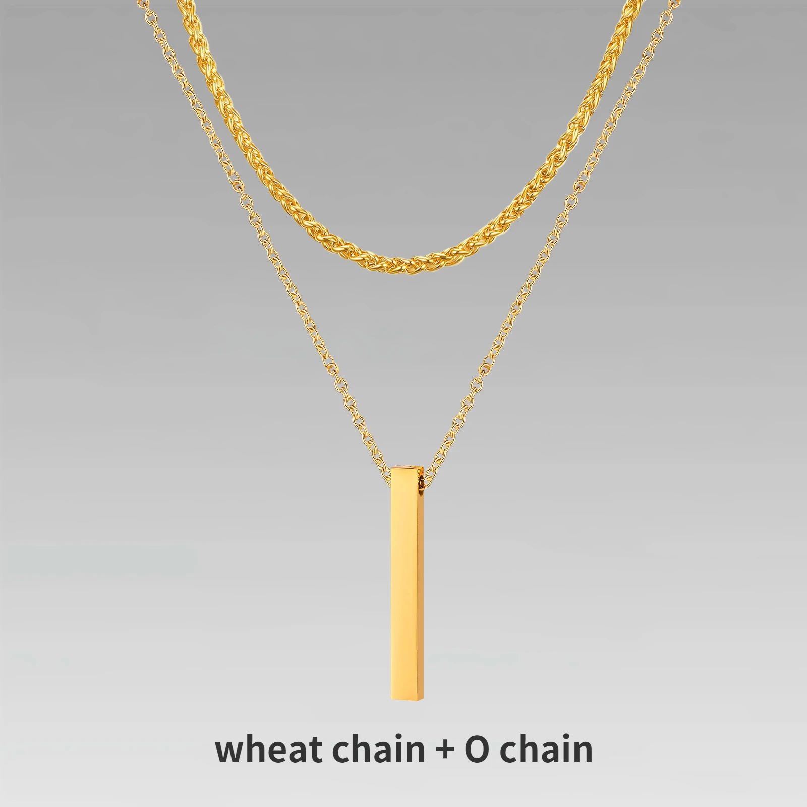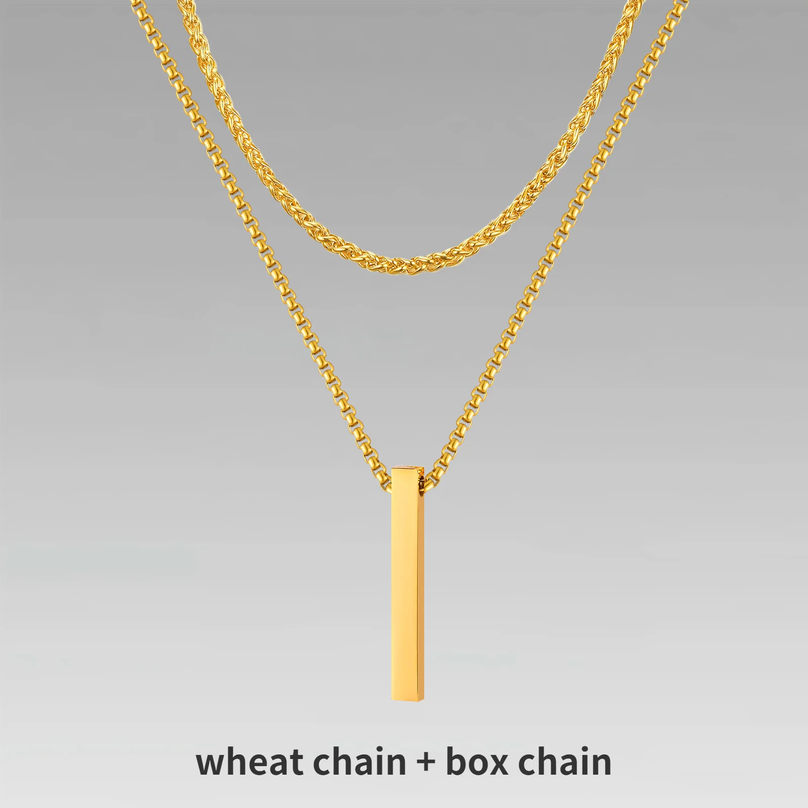 Colliers à barres verticales 3D Vnox pour hommes, pendentif géométrique en acier inoxydable superposé, chaîne cubaine en corde de blé superposée, collier pour garçon