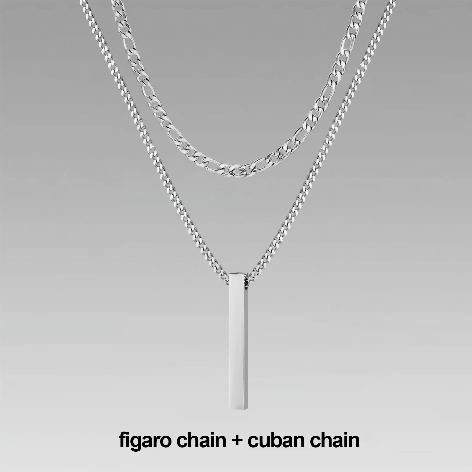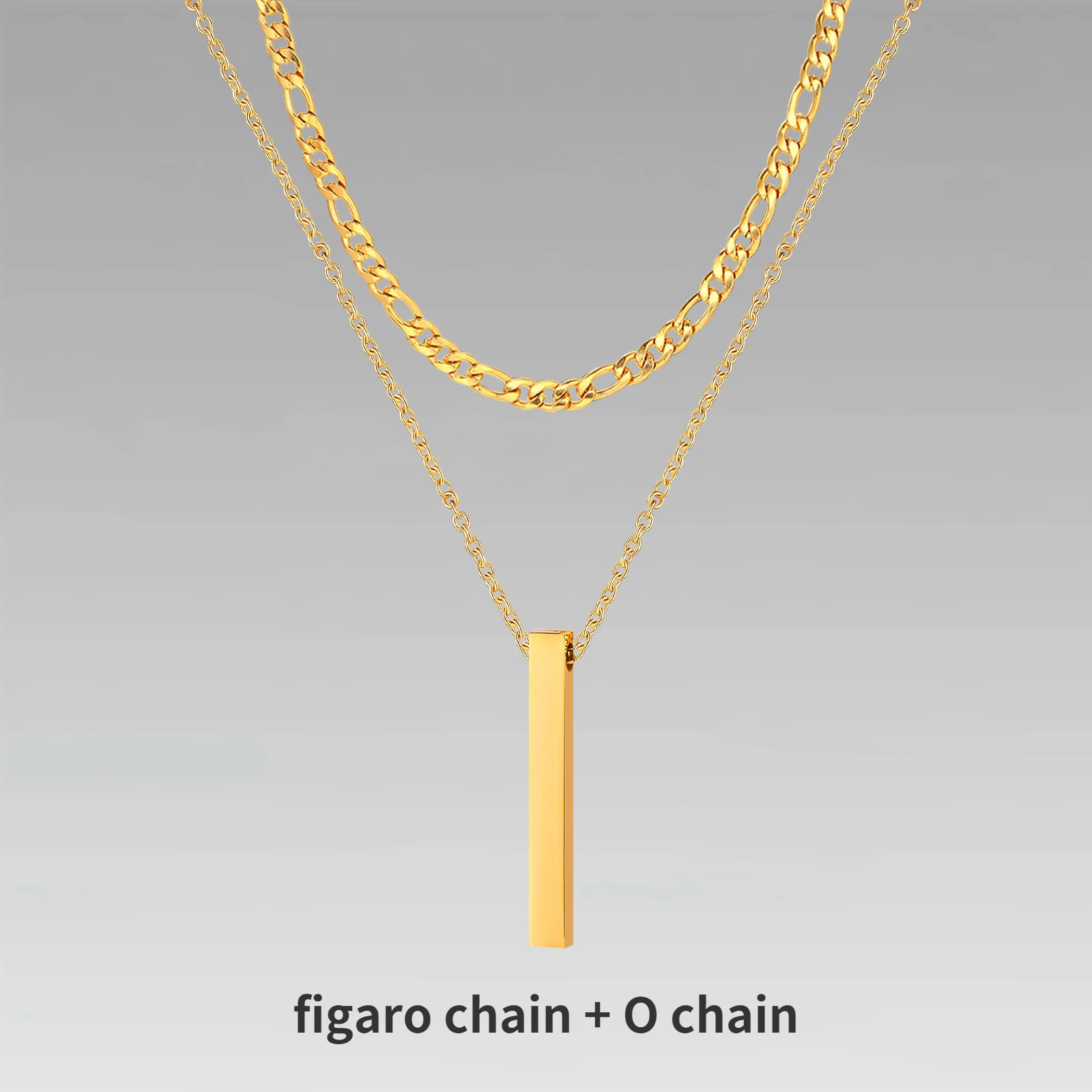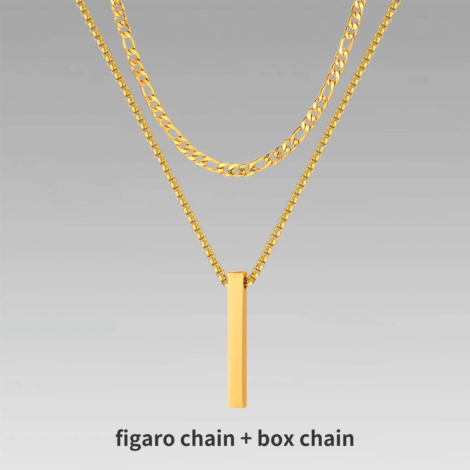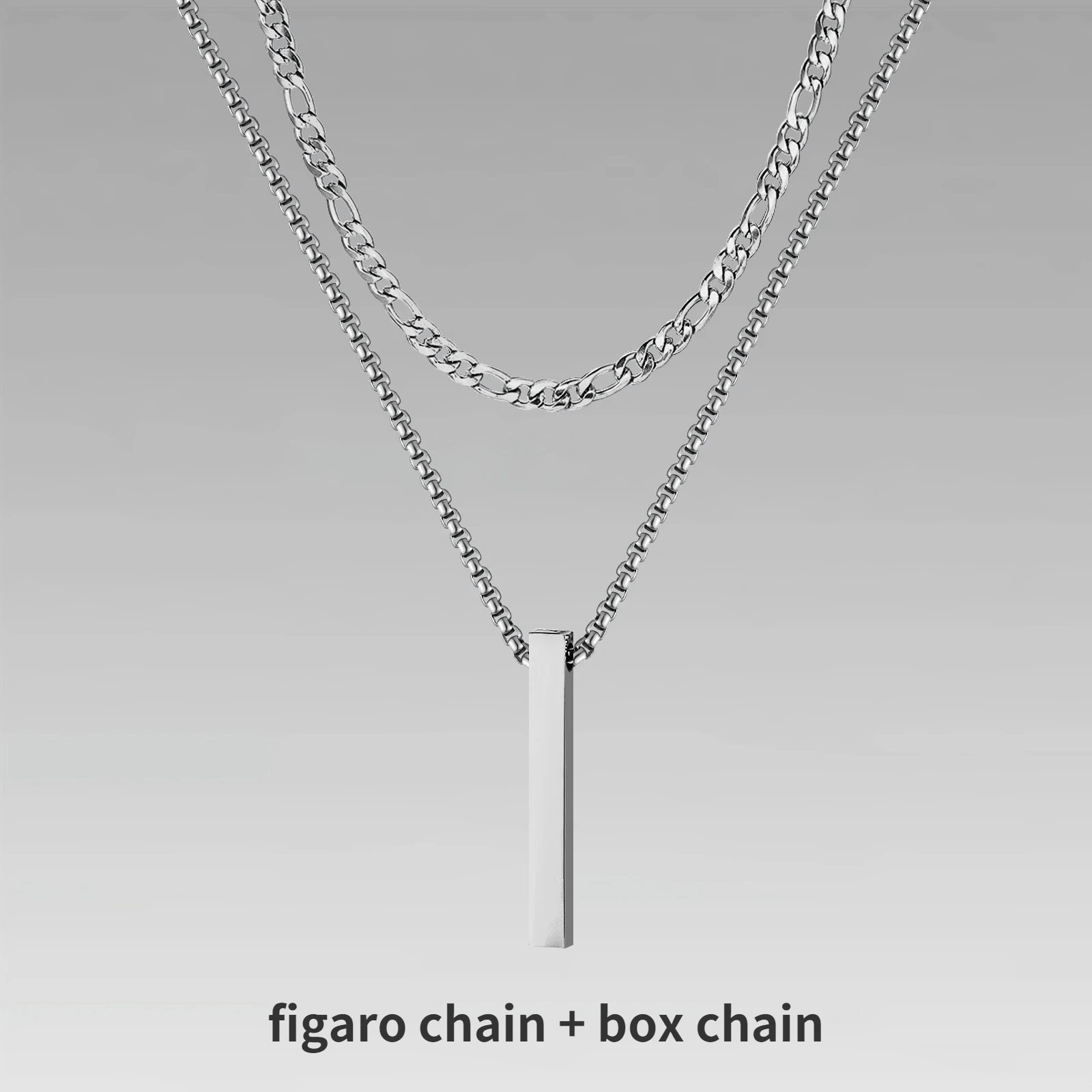 Colliers à barres verticales 3D Vnox pour hommes, pendentif géométrique en acier inoxydable superposé, chaîne cubaine en corde de blé superposée, collier pour garçon