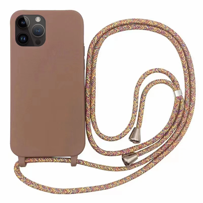 Coque de téléphone en Silicone TPU souple, avec collier et lanière, pour iPhone 15, 14 Plus, 13, 12 Mini, 11 Pro, XS Max, XR, X