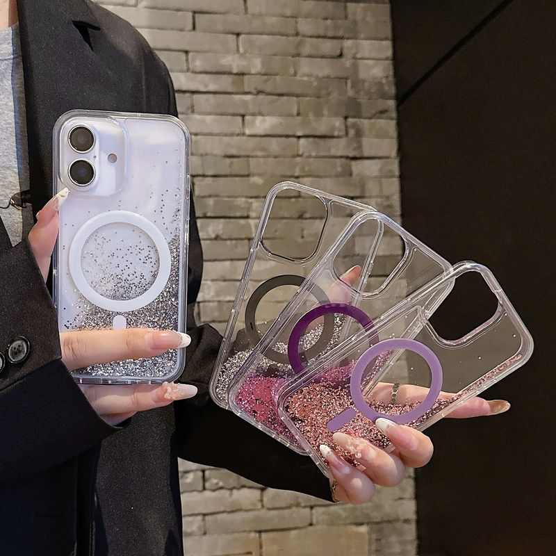 Coque magnétique pailletée avec motif sable liquide fluide, compatible avec iPhone 16 Pro Max et iPhone 15/14