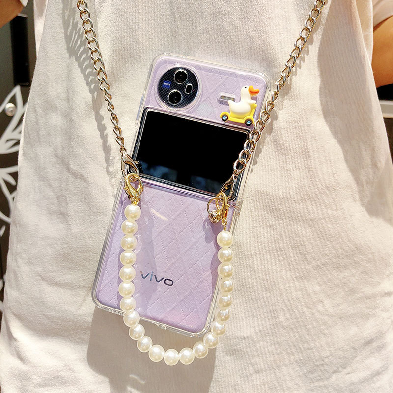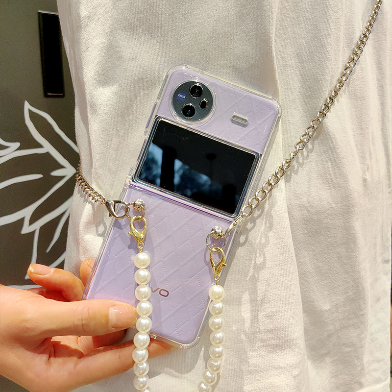 Suitable for vivo flip phone case, foldable screen, transparent anti drop protective cover, diagonal pearl chain