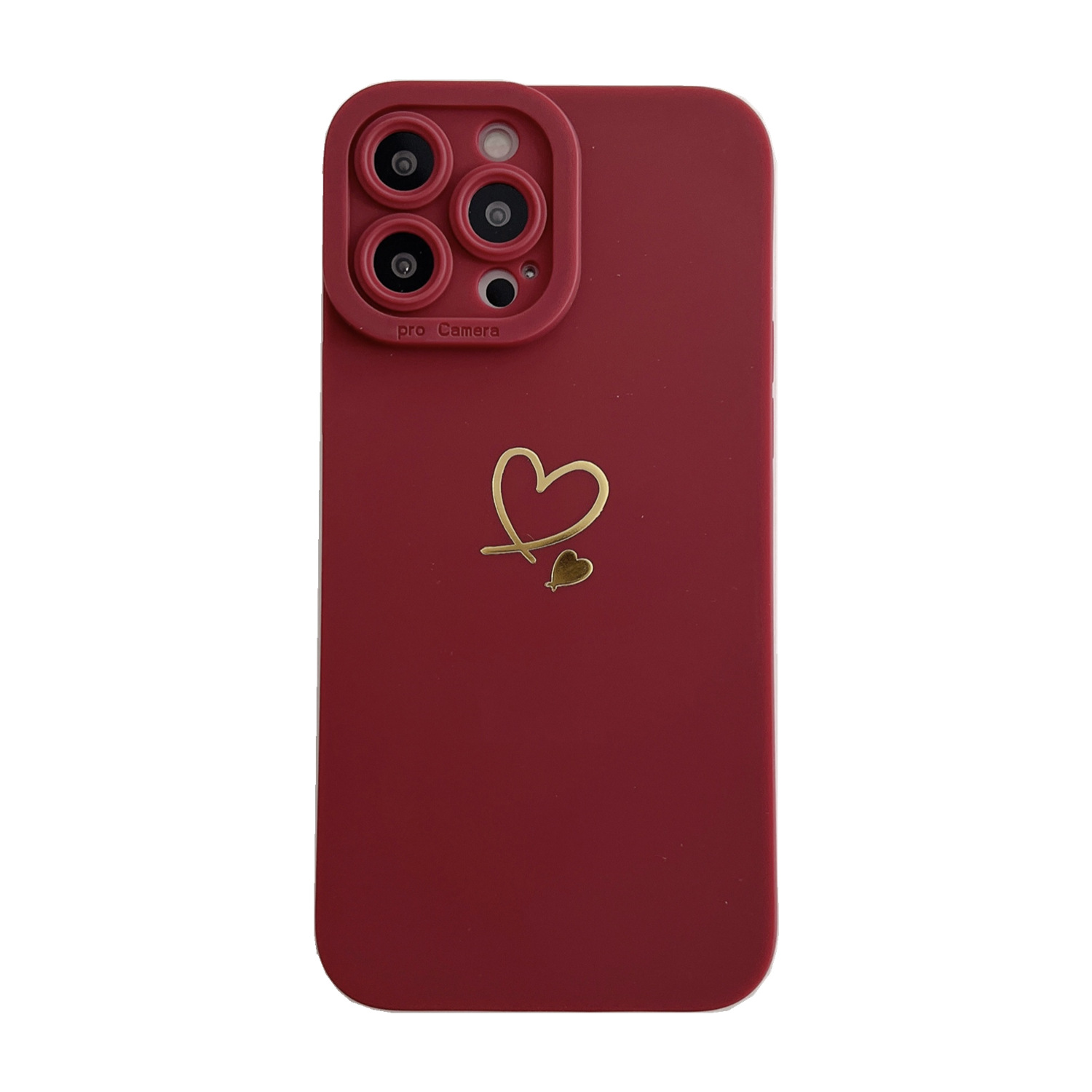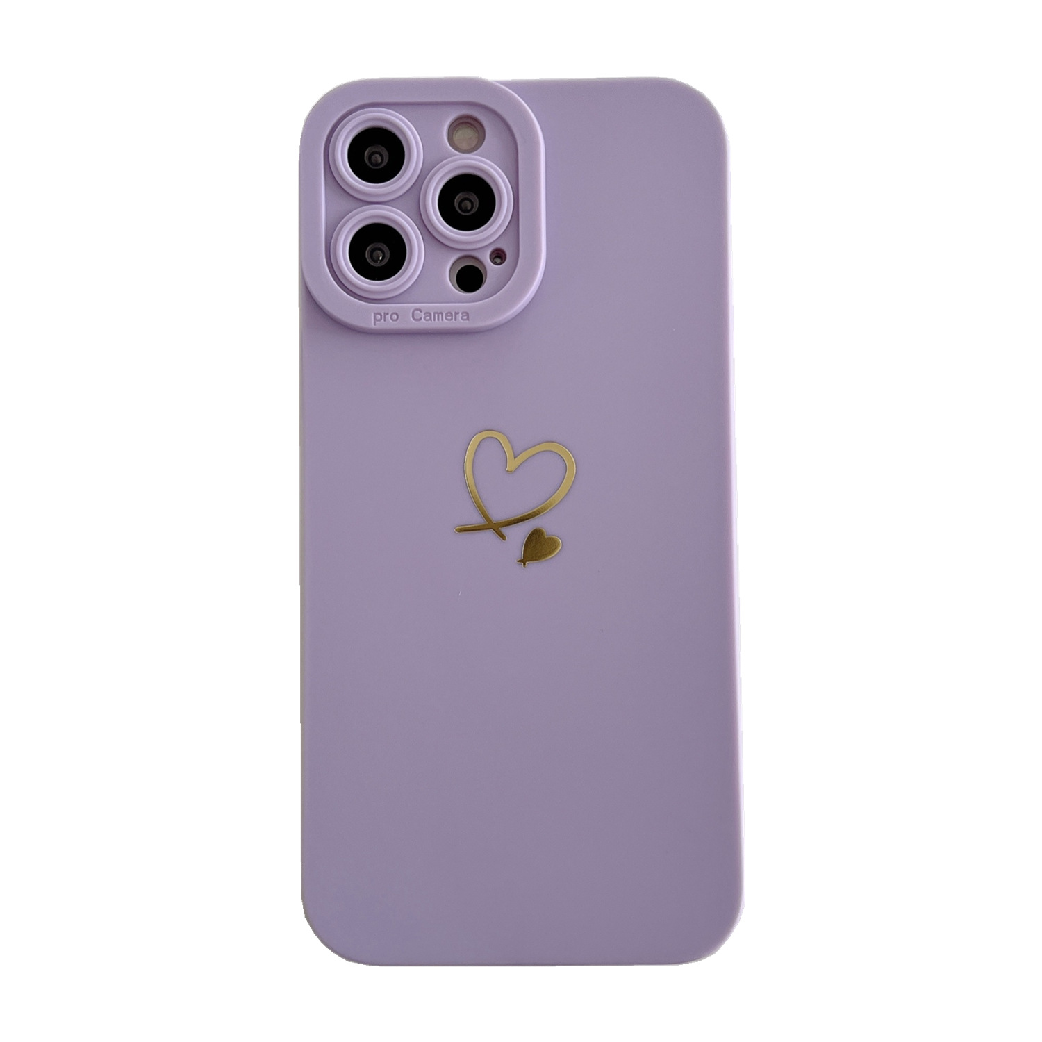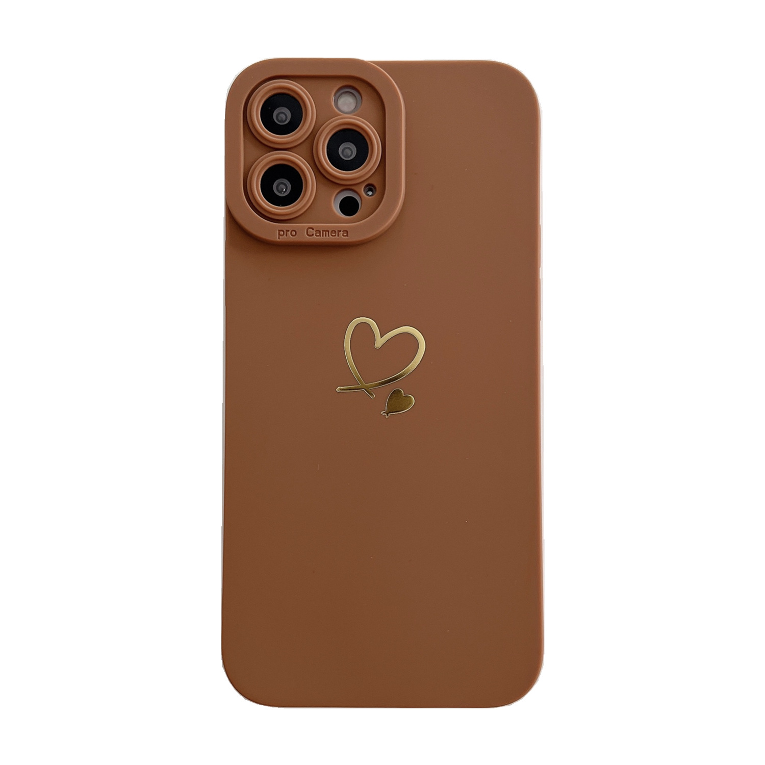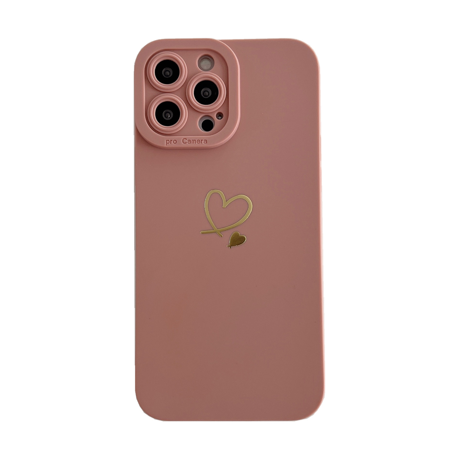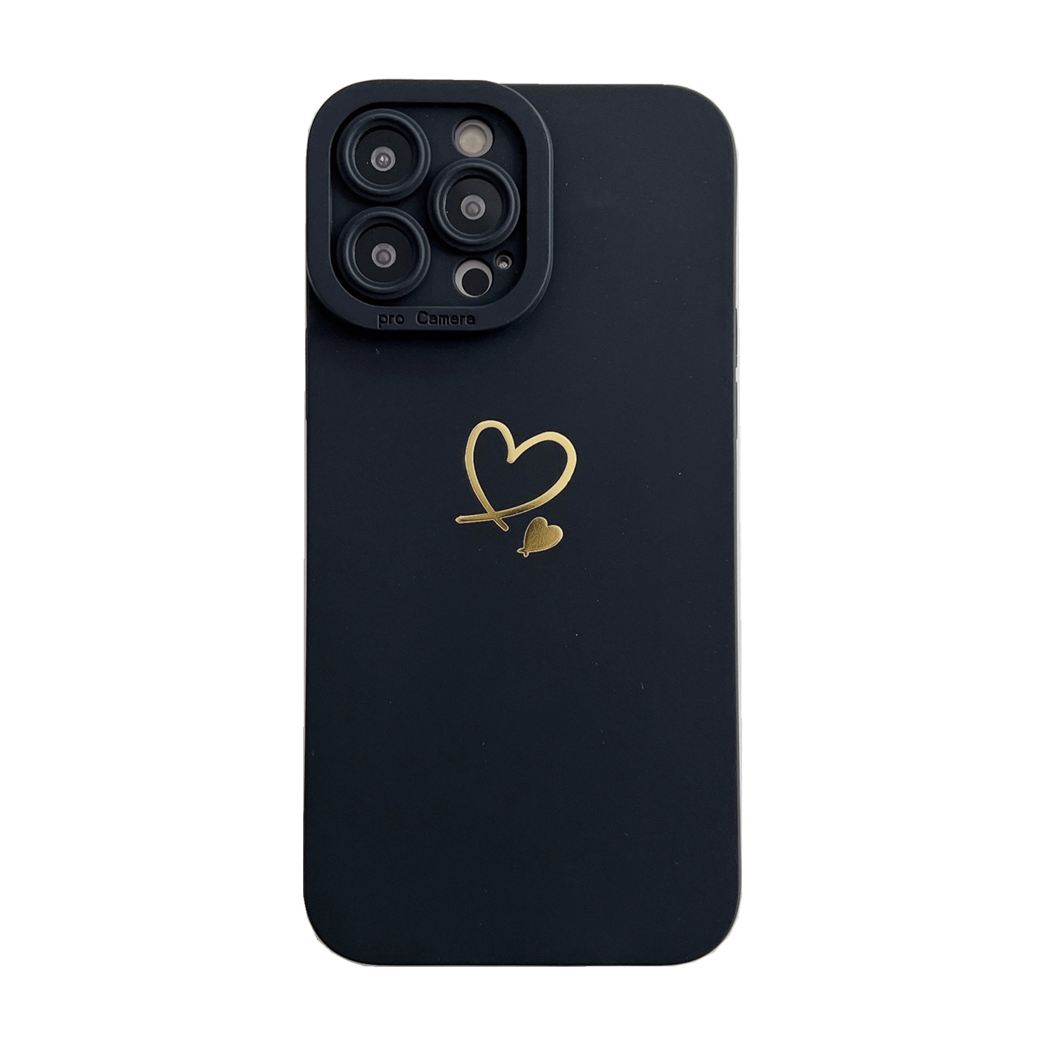 Minimalist Gold Stamped Hollow Heart Suitable for iPhone 13 Apple 15/11/XR Full Package Phone Case 8plus Silicone