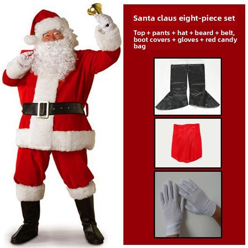 Costume de spectacle du Père Noël 2025, ensemble complet de costumes du Père Noël, adulte - ensemble de huit pièces du Père Noël