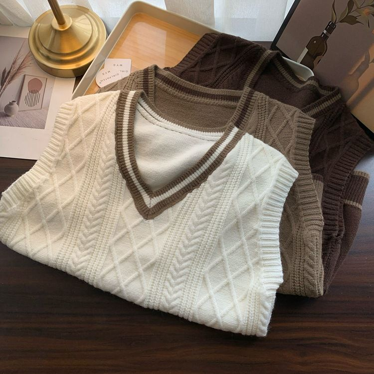 Couleur contrastée, col polyvalent, gilet tricoté à torsion de pâte frite, printemps et automne, version coréenne, vêtements superposés, gilet, pull et gilet