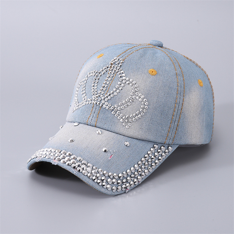 Cowboy Baseball Hat Personalized Water Diamond Five pointed Star Rivet Curved Eaves Duck Tongue Hat
