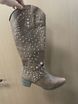 Bottes hautes à talons moyens et épais pour femmes, pointures 40 à 43, style automne-hiver, avec rivets.