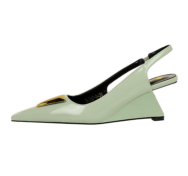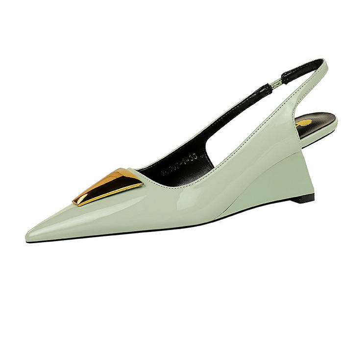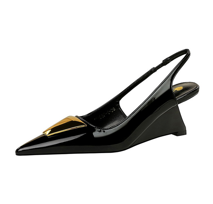Chaussures pour femmes talons hauts talons compensés cuir verni bride arrière creuse bouche peu profonde décoration métallique pointue chaussures simples