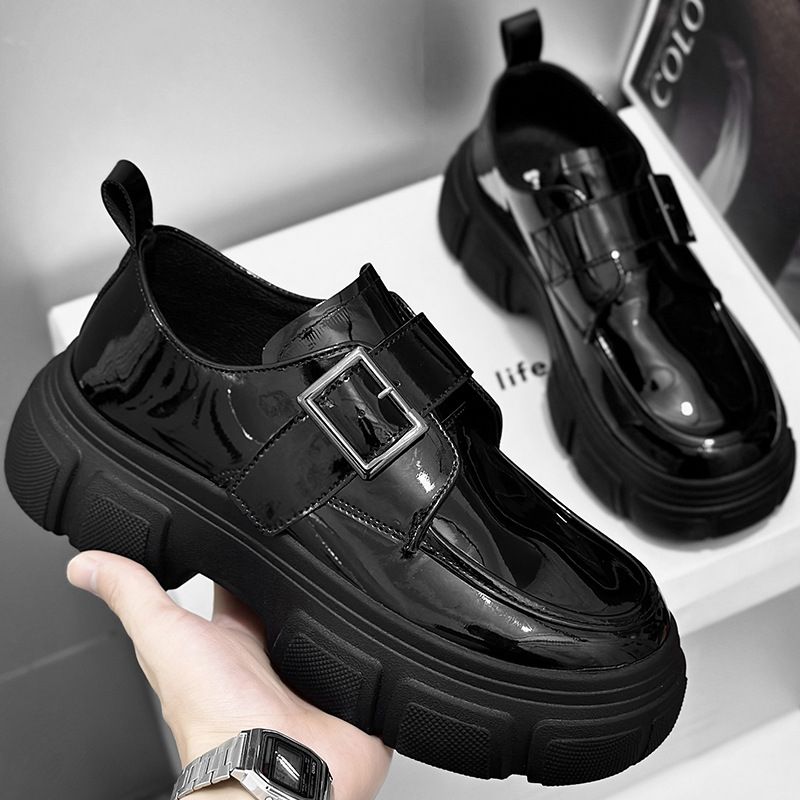Derby à semelles épaisses augmentant la hauteur pour hommes 2024 automne nouvelles chaussures basses en cuir à gros orteil, chaussures décontractées