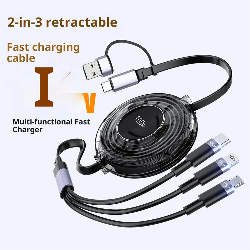 Câble de données pour téléphone portable Digitex 2-en-3 100 W avec interface multifonction Android Type-C et charge rapide PD