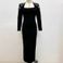 Robe élégante à manches longues et col carré – Robe bandage ornée de cristaux pour soirées et galas (S-L, noir)