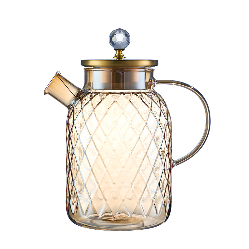 Water bottles Set 1000ml 1800ml French Amber Color Diamond Kawaii Teapot Kettle Cup Thermal Pots Set Gift Kitchen Accessories
