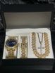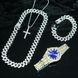 Ensemble de chaînes cubaines UrbanEdge Gothic Cross - Collier et bracelet en acier inoxydable 15 mm avec montre