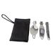 【Fast Refund】Outdoor Camping Picnic Travel Stainless Steel Folding Cutlery Portable Folding Knife Fork Spoon Three-Piece Set with Cloth Bag