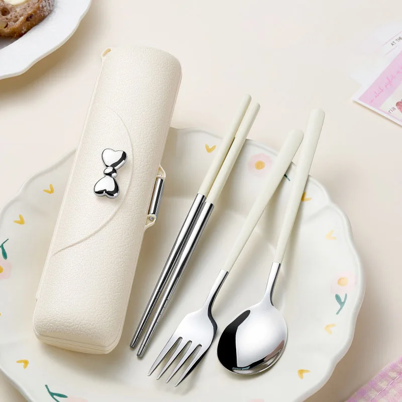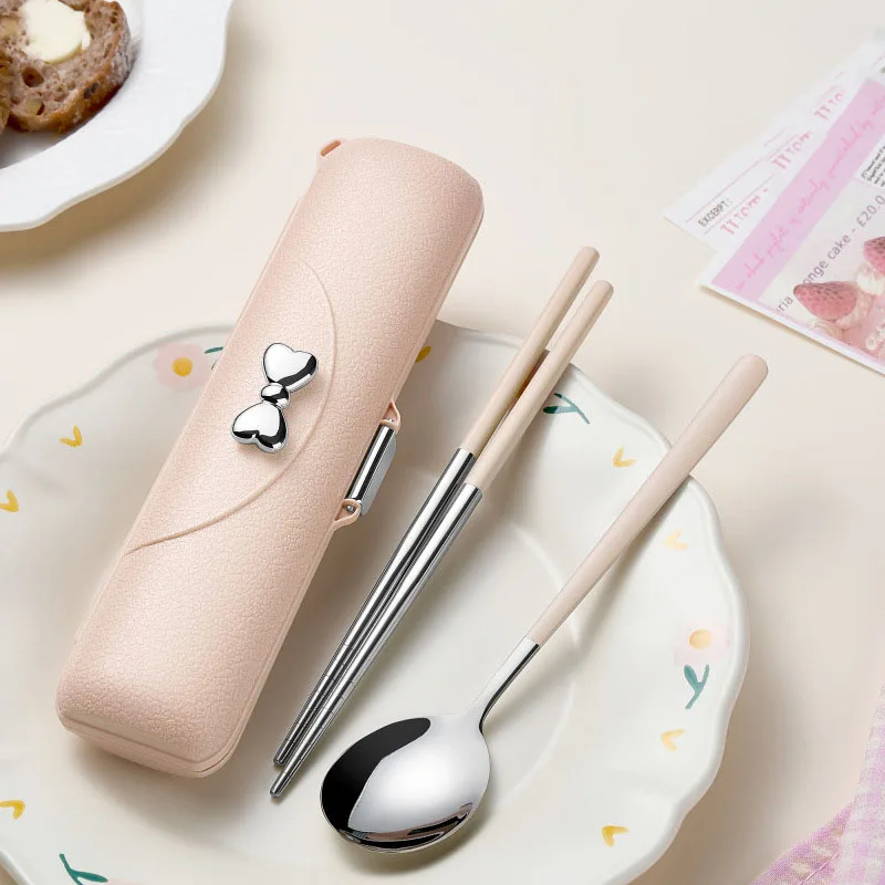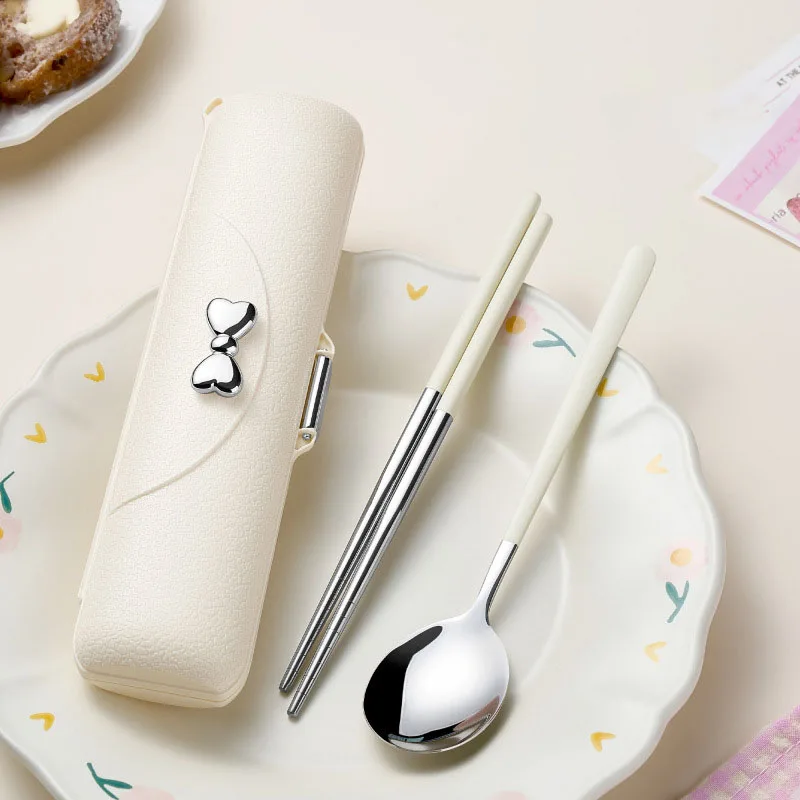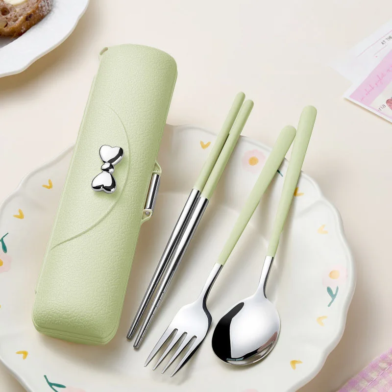 Ensemble de couverts en acier inoxydable avec cuillère, fourchette, baguettes, boîte de rangement, cadeau, ensemble de couverts portables pour voyage, extérieur, camping, école