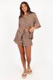 Ensemble deux pièces décontracté d'été à rayures pour femme, avec haut ample boutonné et short à cordon de serrage