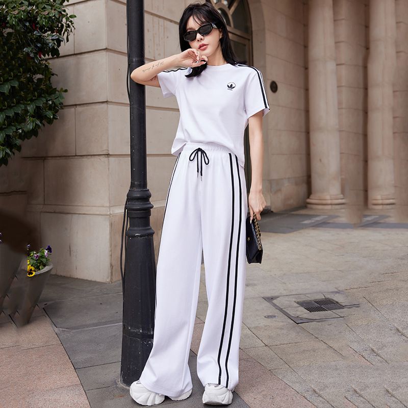 2025 New Fashion Casual Sports Suit for Women Summer Two-Piece Set Elegant Goddess Style Short Sleeve Wide-Leg Pants