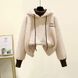 Ensemble deux pièces d'hiver douillet : sweat à capuche doublé polaire et pantalon en laine pour femmes de petite taille, tenue décontractée pour étudiantes.
