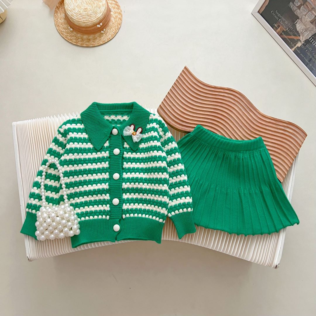 JINYONG Children's Sweater Skirt Two Jacquard Sweater Two Piece Set Girl's Cute Knitted Coat Fashionable Girl