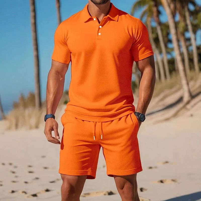 2025 New Men's POLO Shirt Set Turn-down Collar Short Sleeve Pullover Casual Men's Set
