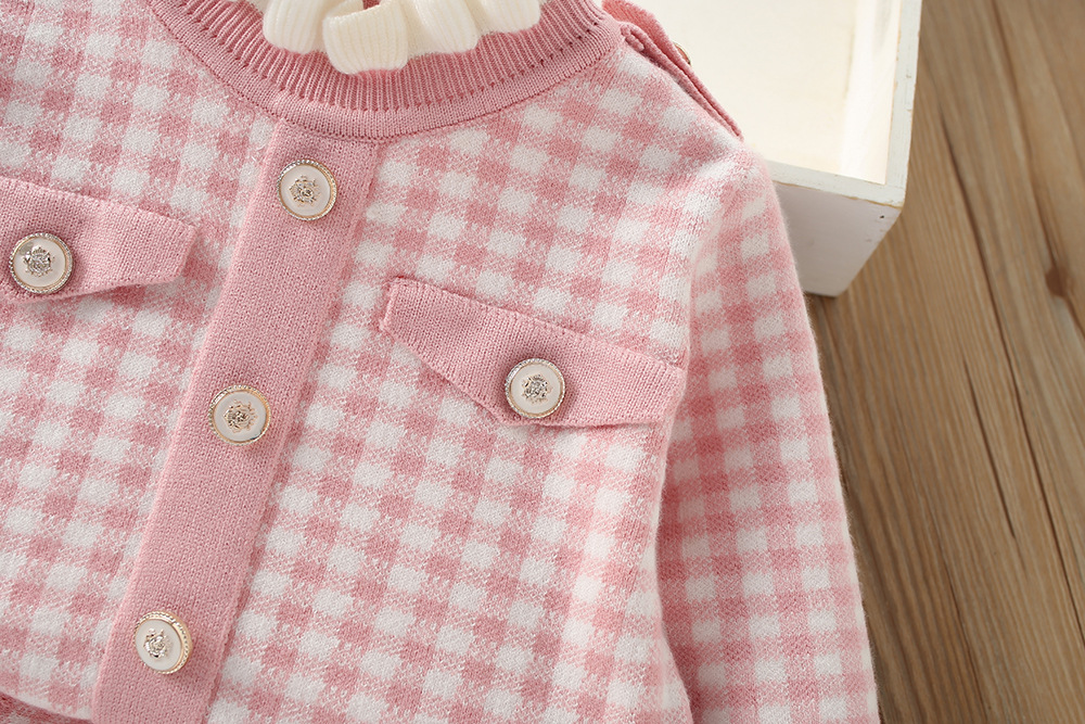 Girls' Sweater Set 2023 Autumn/Winter New Korean Fashionable Girl's Checkered Small Fragrant Knitted Two Piece Skirt