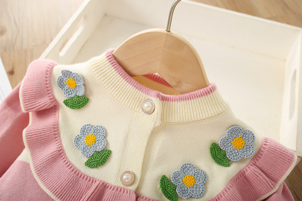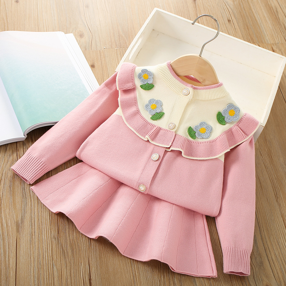 Ensemble pull pour filles, nouvelle collection automne/hiver 2023, Style occidental, petite fille, fleur 3D, dentelle, Cardigan tricoté, robe de princesse