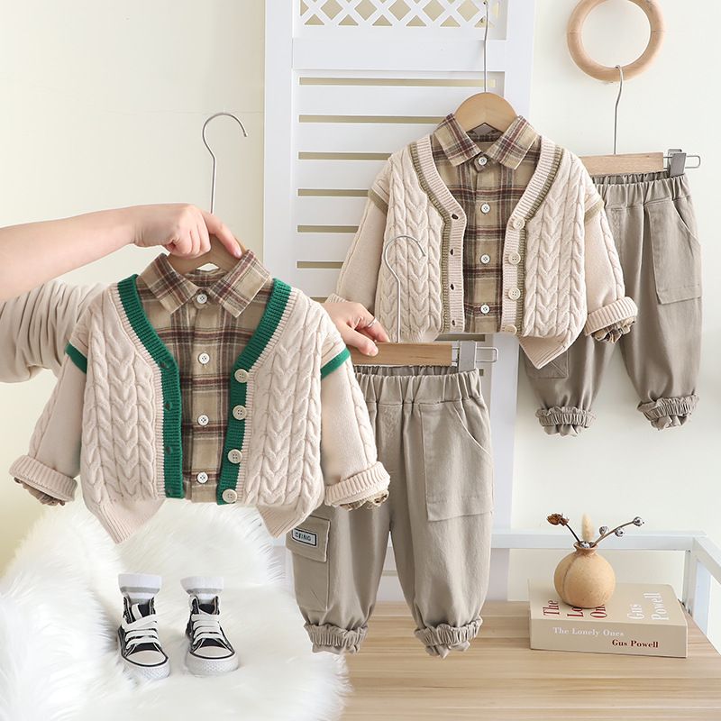 Children's Wear Boys' Autumn Set 2025 New Style Rascal Handsome Children's Autumn Sweater Three Piece Set Baby Autumn Clothes